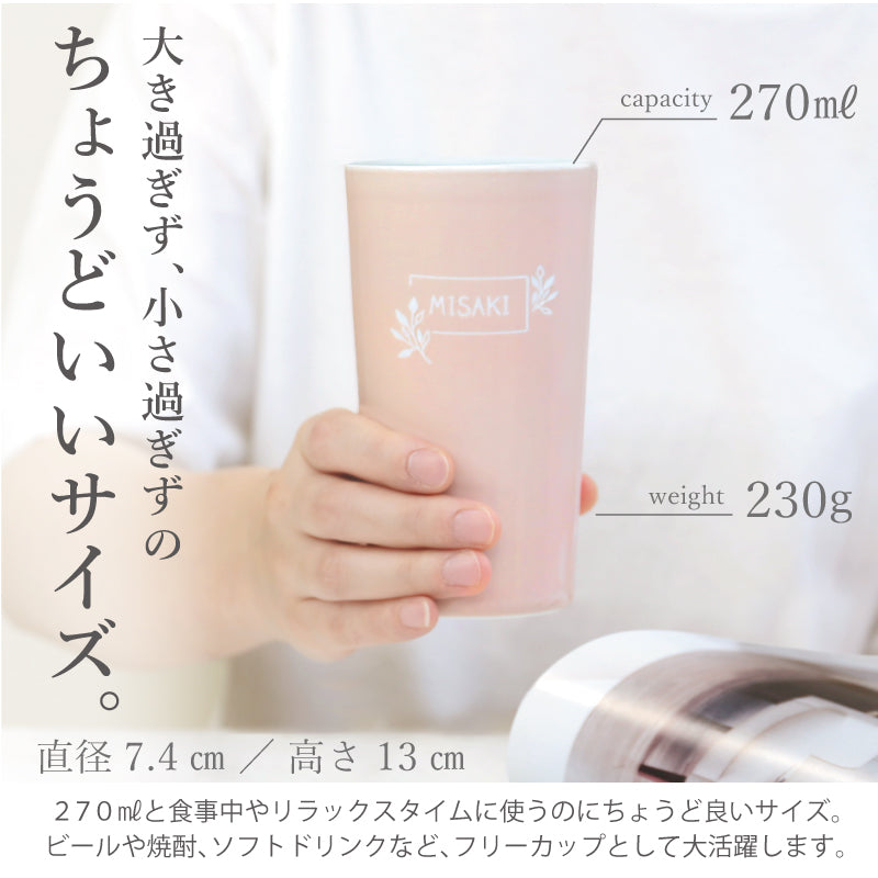 ・ 直径 約7.4cm 高さ 13cm ・重量 約230g ・容量 約270ml |