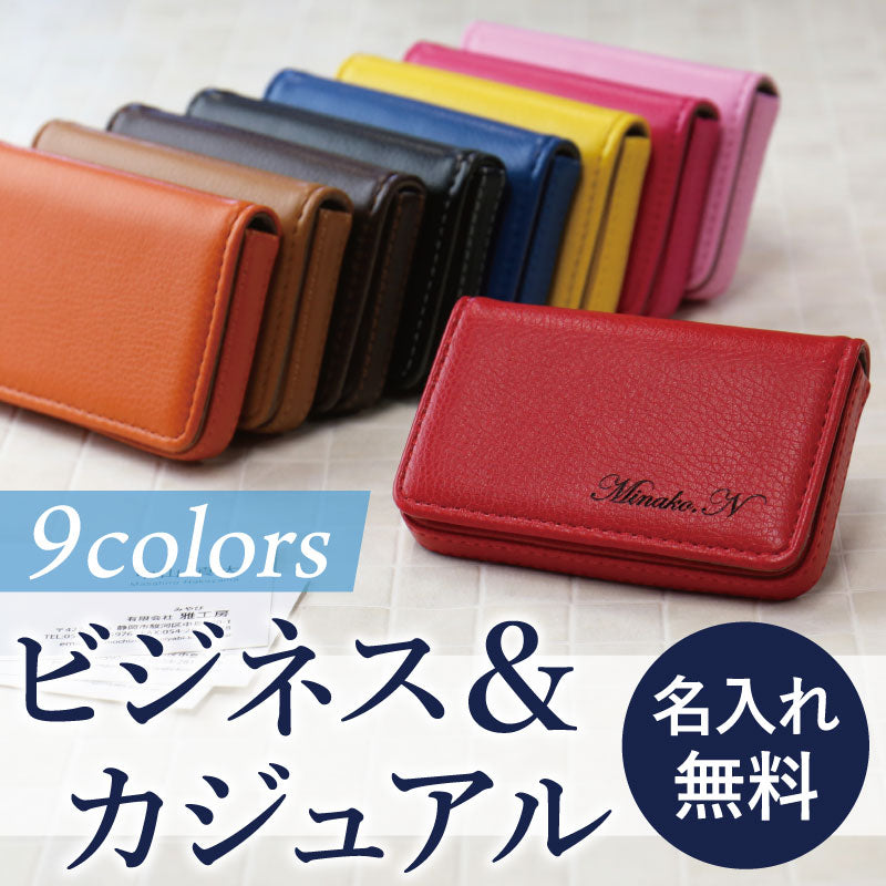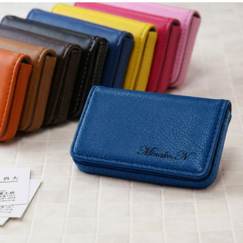 ビジネスにもカジュアルにも使える。 colorカードケース! 名刺を入れてビジネス仕様に、 カードを入れて普段使いにも! 自分に合ったお好きなカラーを選んで もっと素敵なライフスタイルに。 9色のビビットなカラーリングは 男女問わずお選びいただけます。 自分用はもちろん、贈り物にも喜ばれます。 コンパクトな見た目からは想像できない大容量。30枚収納可能! 開閉はマグネット内蔵だから、開けやすくしっかり閉まる。 片手でもラクラク♪ 名前を入れて世界にひとつだけの贈り物に。 当店では名入れサービスが無料! だからギフトにも喜ばれます。 |
