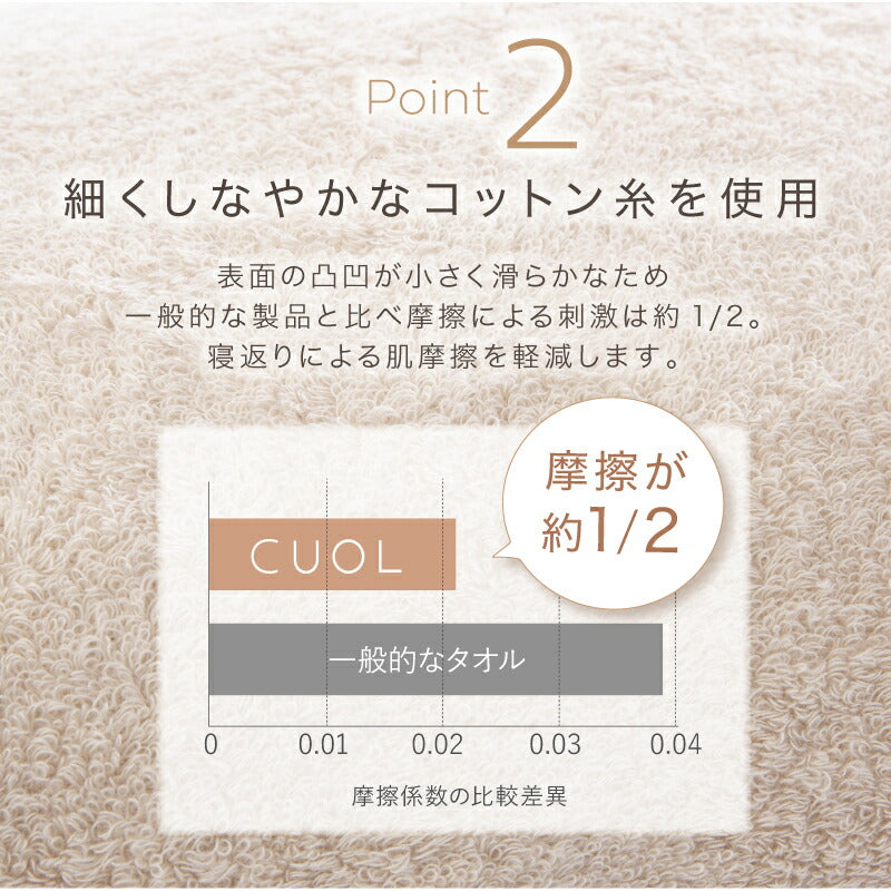 今治タオルで作られた、 スキンケアができる枕カバー。 人生の1/3を占める睡眠時間を、 上質なヘアケア・スキンケアの時間に。 タイパ最強のギフトです♪ 1. 今治タオル製の魔法のまくらカバー 愛媛県今治市にある老舗タオルメーカー ハートウエル社のCUOLシリーズは、 “自分らしい美しさをそっと支える、 大人のためのタオルシリーズ”として、 不動の人気を博しています。 その中でも当店が注目したのが 夢の“寝ながらスキンケア”が叶う枕カバーです。 −純銀の抗菌・防臭効果− 純銀糸を使用することで枕表面の最近繁殖を 抑制することが出来ます。洗濯しても効果が持続するので、 永続的にお肌への負担を抑えることができます。 −摩擦ダメージを軽減− 細くしなやかなコットン糸を使用しているので、 寝返りによる摩擦を軽減することができます。 −着脱もスムーズ− ボタンやジッパーの無い筒状伸縮タイプなので、 どんな形の枕にも合い、着脱も簡単です。 2. カラーやデザインは全4種から選べます ・幾何学柄(ベージュ) 黄みがかったベージュはかわいらしさにあふれ、 お部屋がふんわり暖かみを増します。 ・幾何学柄(グレージュ) グレージュはお部屋馴染みも良く、 落ち着く空間を演出できます。 ・無地(アイボリー) やさしいアイボリーは清潔感があり、 どんなお部屋の雰囲気にもマッチします。 ・無地(グレー) 落ち着いた色味のグレーは、 男性への贈り物としてもおススメです。 3.刺繍による名入れを無料で致します こちらの枕カバーには、 無料でお名前を刺繍いたします。 「 どうして名前入りが喜ばれるの? 」 生まれた時からずっと一緒に生きてきた「名前」。 普段あまりにも身近にあるので、 自分の名前のことを深く考える機会はありませんが 贈られた商品に自分の名前が刻まれていたらいかがでしょう。 その瞬間、“プレゼント”は“自分だけの 大切なもの”へと変化します。 そして贈ってくれた方の真心を感じ、 自然に笑顔がこぼれるのではないでしょうか。 名前はその人にとって唯一無二、かけがえのないものです。 私たちはそのお名前を大切に、贈る人、贈られる人、 両方の笑顔を想いながら商品を送り出しています。 当店のお名前彫刻は専門のスタッフが こだわりと自信をもって行っていますので、 1文字1文字つぶれることなく鮮明に刻印され、 ずっと消えずに残ります。 お客様の気持ちのこもったギフトを 永く愛着を持ってお使いいただけますように。 それが、私たち名入れギフトOkuluスタッフ全員の願いです。 ≪こんなシーンにおすすめ≫ ・ 20代 30代 40代 50代 60代 女性 への 母の日 の お祝い に ・ 母 お母さん 子育て中 の ママ に ・ 友達 女友達 友人 へ ・ 出産祝い ママ ギフト として ・ 送別品 内定祝い 昇進祝い など 記念日に ・ 友達への 誕生日プレゼント に ・ 母の日 父の日 敬老の日 の贈り物に ・ 自分へのご褒美 に ・ 美容グッズ のプレゼントとして ・ クリスマス ホワイトデー のプレゼントとして |