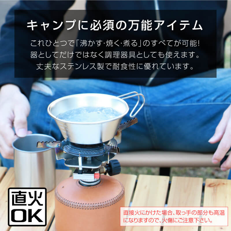 ・扱いやすいステンレス製 で 直火OK。