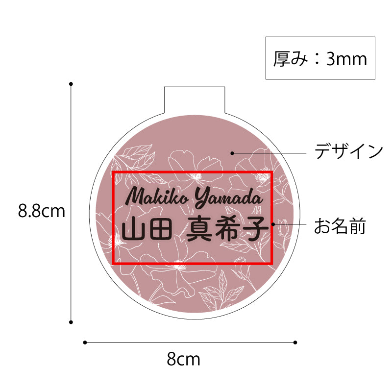 【ネームタグ】縦8.8cm×横8cm×厚み3mm 【ハンカチ】縦20cm×横20cm |