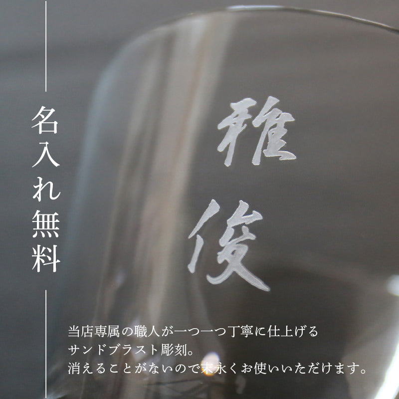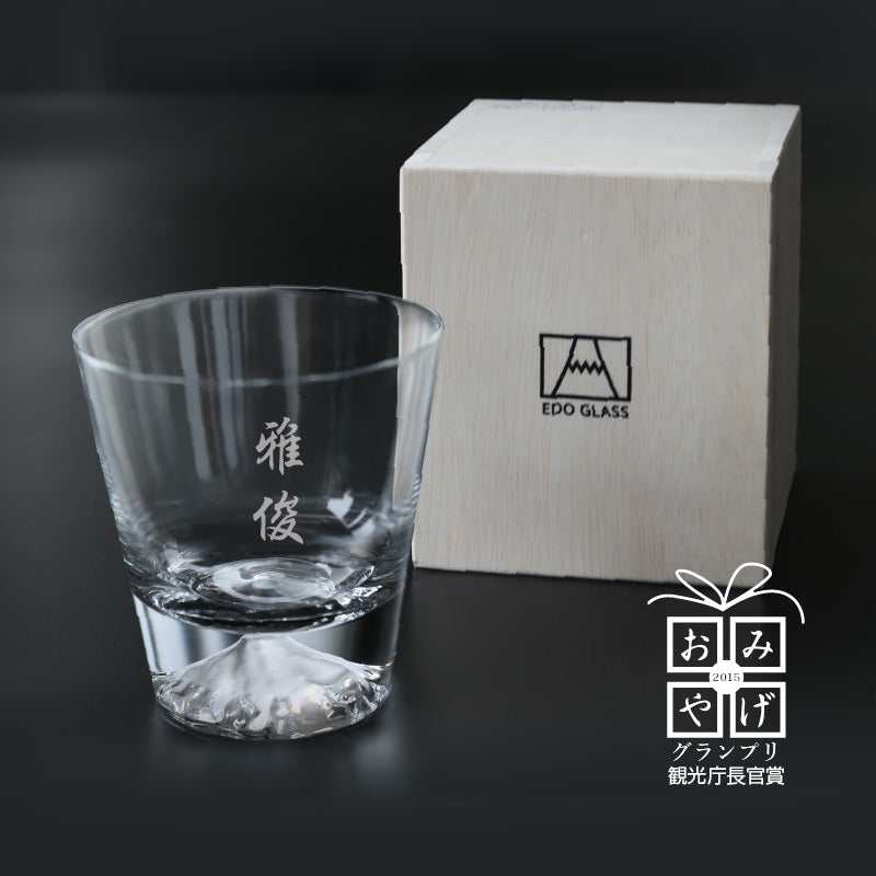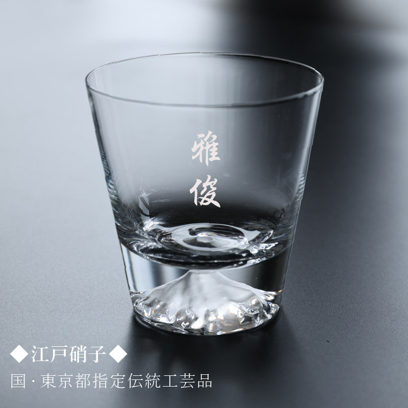 \ 一生モノの憧れ。高級マイグラス / おみやげグランプリ受賞作品 あの 江戸硝子 富士山グラスにこだわり名入れ彫刻 - 一生モノのマイグラスにおすすめ。3つの理由 - 1. おみやげグランプリ受賞作品! おみやげグランプリ 2015 グランプリ及び観光庁長官賞受賞商品。 2015年から未だに人気な理由は、その完成度の高さ。 一生使い続けたいと思わせる、美しい職人の手仕事。 グラスの底に入った富士山は 江戸硝子職人の技が光る手吹きによるもの。 細かな気泡は手づくりの証です。 手に取ったら思わず明かりに透かして見たくなる、 雄大な富士山が見事に表現されたデザインです。 2. 職人しごとのコラボレーション 職人の手仕事 手づくり硝子×名入れ彫刻 他との違いを感じるガラスの薄さ。 口に当てた時に分かります。 いつものお酒がより一層美味しく感じる施し。 美しい世界遺産 富士山が魅力のグラスに 当店の職人がお名前を彫刻します。 「お名前入り」は特別なギフトにピッタリ。 目にするたび、もらった時の感動がよみがえります。 ひとつひとつが全て手づくり。 一生ものにふさわしい高級グラスです。 3. 注ぐ飲み物によって変わる表情 注ぐ飲み物のお色が富士山の山肌に反射。 様々な表情の富士山をお楽しみいただけます。 「今日はどんなお酒を注いでみようかな…」 ウイスキー、ブランデー、時にはカラフルなカクテルでも。 毎日の晩酌は日々の疲れを癒すリラックスタイム。 1日の疲れをリセットする大切な時間をより一層特別なものに。 自分だけの「夜の富士山」。大人の時間をお楽しみください。 〔 選べる2つの書体 お名前彫刻 〕 それぞれに味があるデザインに仕上がる書体デザイン。 1)楷書体 2)英書体 ベーシックな渋さのある楷書体 おしゃれなインテリアにもマッチする英書体 お好きな書体をお選びください。 〔 当店取り扱い富士山グラスは【 正規品 】です。〕 田島硝子 株式会社様より直接仕入れ。 木箱・「金シール」・「品番・品名シール」・しおり付属が付属しております。 お客様には安心してご購入いただけます。 [ 国・東京都の伝統工芸品 江戸硝子とは ] 「江戸硝子」とは、江戸時代に生まれた硝子製法を受け継ぎ、手づくりで製造されたガラス製品です。 18世紀序盤に鏡や眼鏡等を製造したのがはじまりとされており、 明治初期には欧州の技術の導入によって多様なニーズへの対応が可能となり、東京の地場産業として発展しました。 江戸硝子は機械による大量生産品とは異なり、すべての製品がオリジナルの1点もので、 手づくりだからこそ出せる深みや味わい、デザイン性の高さが特徴です。 1,400℃ほどの高温で溶かされたガラスを鉄製の棹(さお)で巻き取った後、 「吹き」「押し」「延ばし」などの技術を用いてさまざまな器を形づくっていきます。 「江戸硝子」は2002年(平成14年)に東京都伝統工芸品、2014年(平成26年)には経産省より国の伝統的工芸品に指定されました。 (田島硝子ホームページより) 〔 こんなシーンで選ばれています 〕 還暦 古希 喜寿 傘寿 米寿 卒寿 白寿 百寿 の 長寿のお祝い として。 50歳 60歳 70歳 80歳 など 人生の節目 の記念日 に。 40代 50代 60代 70代 80代 晩酌を楽しむ 男性 お父さん おじいちゃん に。 お酒好きな 父親 母親 へ ペア ギフト としてセットで 父の日 母の日 贈り物に。 ウイスキー好き ブランデー好き の方への マイグラス として。 |