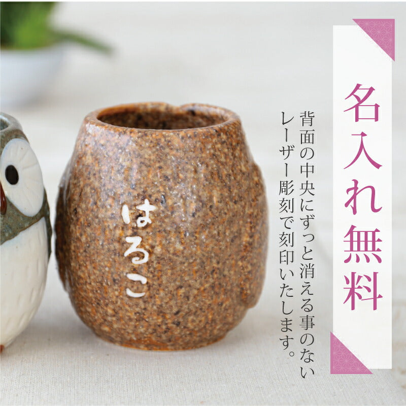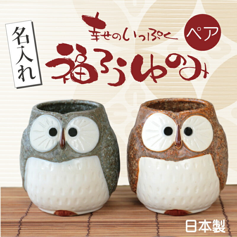 \ かわいいくて縁起の良い笑顔のギフト / 笑顔の似合うあの人へ、愛らしいふくろうのお湯呑を贈りましょう♪ 【幸せを願う気持ちが伝わる】 ふくろうは昔から縁起の良い鳥として知られ、 ・福籠 … 福をたくさん詰め込む 食事中やお茶の時間に手にするたびに、もらった時の喜びと 【愛嬌あるかわいらしいふくろう】 まあるい目のぽってりとした可愛らしいふくろうは小さなお子様にも喜ばれます。 【高級感のある桐箱入り】 蓋を開けると、仲良く2つ並んだ可愛いふくろうが♪ 【 名入れ彫刻 】 「 どうして名前入りが喜ばれるの? 」 だから、「名入れギフト」は大切な人に感謝の気持ちを伝えるのにぴったりなおくりもの。 〔こんなシーンでおすすめ〕▼ この商品について詳しく見る