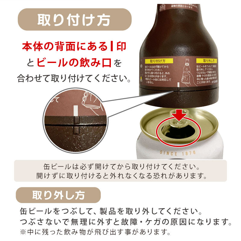 【グラスについて】 ・電子レンジ不可 ・家庭用食洗機不可 ・手作りのため、形状が若干異なったり、多少の歪みが見られる場合がございます。 また、気泡等が混入する場合がございますが、品質に問題はございませんので、予めご了承ください。 【泡ひげビアーについて】 ・缶を取り付けたまま保存しないでください。 ・ご使用後は本体を取り外し、本体以外を水やぬるま湯で薄めた食器用洗剤を使用してください。 ・ご使用後は必ず接続アタッチメント、注ぎ口キャップ、栓キャップをきれいに洗ってください。 ・長期間ご使用にならない時は、きれいに洗って汚れを落とし、十分乾燥させ、高温多湿の場所をさけて保存してください。 【コースターについて】 洗浄時は水洗いせず、濡れふきんなどでふき取って下さい。 ※改良のため、予告なく仕様変更する場合があります。 |