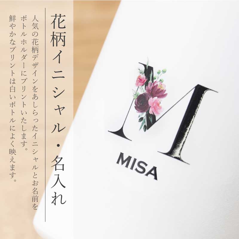 ペットボトル を冷たいまま持ち歩ける、 夏に大人気の ペットボトルホルダー ! イニシャルフラワーデザインプリントで ギフトにとってもお薦めです。 1) ペットボトルがそのまま入るホルダー 暑い夏の日、外出先で購入したペットボトル飲料、 すぐにぬるくなってしまいますよね。 特に水筒に入れられない炭酸飲料は最後まで美味しく飲めない事も… こちらのボトルインボトルは移し替える手間なし! ペットボトルがそのまま入って保冷可能。 また、市場で売れ筋の500ml〜650mlの90%をカバー。 だから、自動販売機やコンビニで購入したペットボトル飲料を 快適温度をキープしたまま持ち運べちゃうんです♪ 水筒 には直接入れられない 炭酸飲料 乳酸菌飲料 清涼飲料水 。 またニオイがついてしまうから、と諦めていた飲み物 。 スポーツドリンク なども これさえあれば冷たいまま持ち運びOK! 車に置いておけば飲み終わったら買い換えて入れるだけ。 長時間のドライブでも快適です。 2)機能性 冷たいペットボトル飲料を入れてカバーをしっかりと締めるだけ。 たったこれだけで冷たい飲み物を長く美味しく持ち運べるんです! ・保冷 保温 効果 真空断熱二重構造だから、長時間冷たい温度をキープ! 暑い日でも安心です。 冬はもちろん あたたかい 飲み物もOK。 年中手放せない相棒になりそうです。 - 実際にスタッフが使用してみました - 朝入れた冷たいお茶のペットボトルが夕方まで冷たい状態! 約6時間程度は美味しく飲めました。 ※サイズ・ご使用環境により異なります。 ・結露なし 冷たいペットボトルをデスクに置いておくと結露して書類が濡れてしまう… こちらはそんな心配もありません。 朝冷蔵庫から取り出したペットボトルも ボトルインボトル なら 結露しない から、バッグの中に入れるのにも快適です。 スタイリッシュなデザインだから、オフィスなどの 職場 にもおすすめです。 ・折りたたみ式ハンドル付き ペットボトルをそのまま持ち運ぶと結露で手が濡れてしまったり、 手が塞がり、煩わしさを感じる事も。 こちらは携帯に便利な ハンドル付き。 ちょっとした移動の際は指を引っかけて気軽に持ち運び可能。 折りたたみ式 なので持ち運び時以外はすっきり収納できて、 鞄やリュックにしまう時も、スペースの邪魔になりません。 カラビナを付けてバッグに取り付けたり、 アウトドアシーンではベルト通しに装着したりと使い方は自由自在。 手荷物を持たない派の方にもおすすめです。 ・お手入れ簡単 水筒の様に細かなパーツが無いから、ストレス無く洗えるのもポイント。 茶渋など衛生面が気になる水筒に比べ、清潔にお使いいただけます。 水筒を洗うのが面倒…そんな方 へのプレゼントにもおすすめです。 3)オリジナルデザインの名入れ 当店のデザイナーが考えた、 心も華やぐフラワーイニシャルをプリントいたします。 下にはお名前も入れられるので、 大切な方へのギフトにぜひ。 「 どうして名前入りが喜ばれるの? 」 自分の名前が入った商品は世界にただ一つだけ。 “ 自分の事を考えながら選んでくれたんだ ” そう感じさせてくれます。 だから、相手を大切に想う気持ちがより伝わります。 さらにお名前彫刻はずっと消えずに残るから、 永く愛着を持って使っていただけます。 だから、「名入れギフト」は大切な人に感謝の気持ちを伝えるのにぴったりなおくりもの。 私たちは、贈られた人も贈った人もみんなが笑顔になれる商品をお届けします。 〔 こんなシーンにおすすめ 〕 ・ 炭酸ドリンク 果汁ドリンク を冷たく長時間持ち歩きたい方に ・ ステンレスボトルクーラー ボトルクーラー ボトルカバー として ・ ペットボトルカバー ペットボトルケース 保冷ペットボトルホルダー として ・ お母さん 母 彼女 女友達 など かわいい ものが好きな方への プレゼント に ・ 凍った飲み物を入れて、 氷嚢 アイシング 代わりに ・ 氷のう として ゴルフ スポーツ アウトドア レジャー での クールダウン や 怪我 日焼けの 冷却 に ・ 夏 の 暑さ対策 熱中症対策 として |