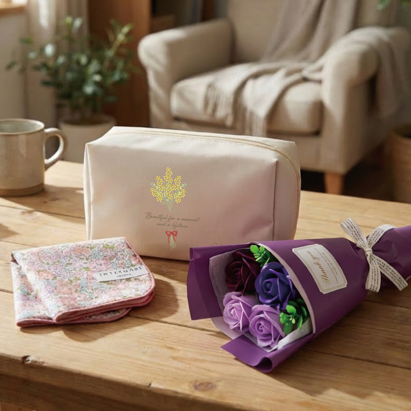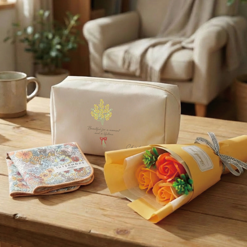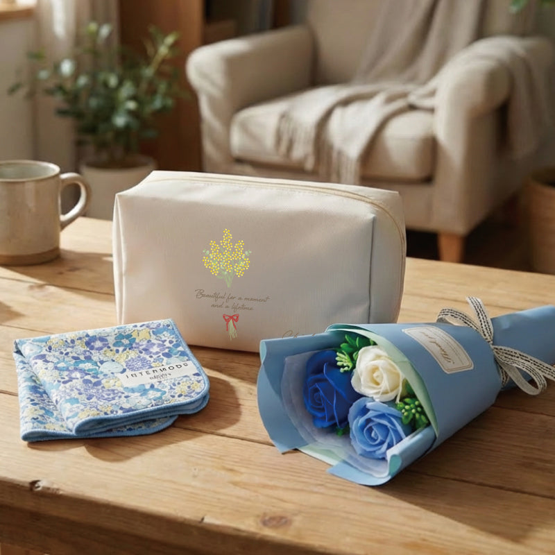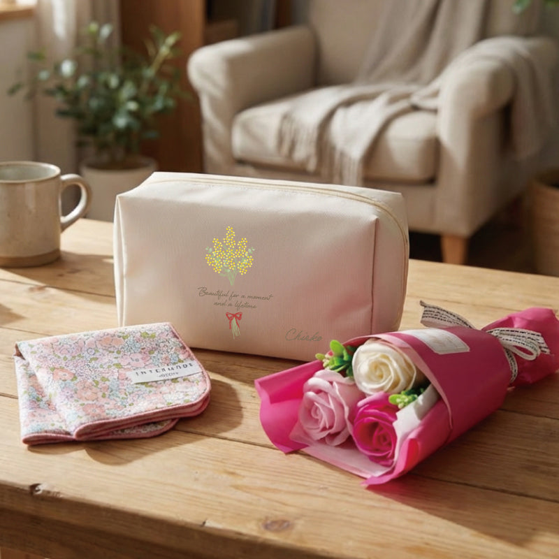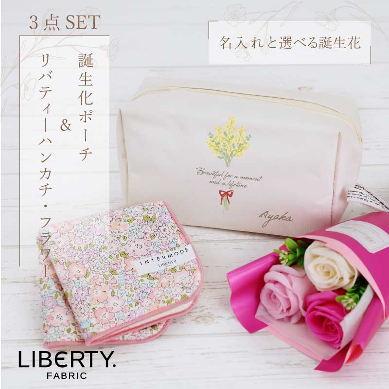誕生花ポーチ & ハンカチタオル フラワー3点セット