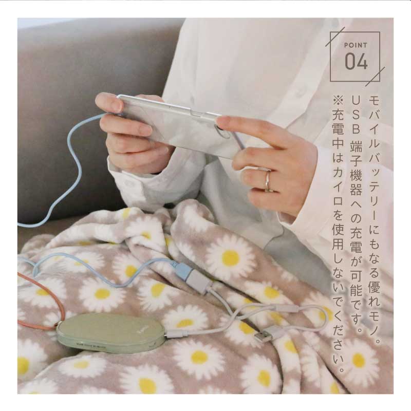 | 備考 | ■付属品:USBケーブル ■電源:USB DC5V 5000mA(USB電源からの充電式) ■使用時間:連続使用時間は、使用場所の気温などによって異なります。 寒さのレベルにより2〜4時間の使用が可能です。 ■温度:45-50℃ ※改良のため、予告なく仕様変更する場合があります |