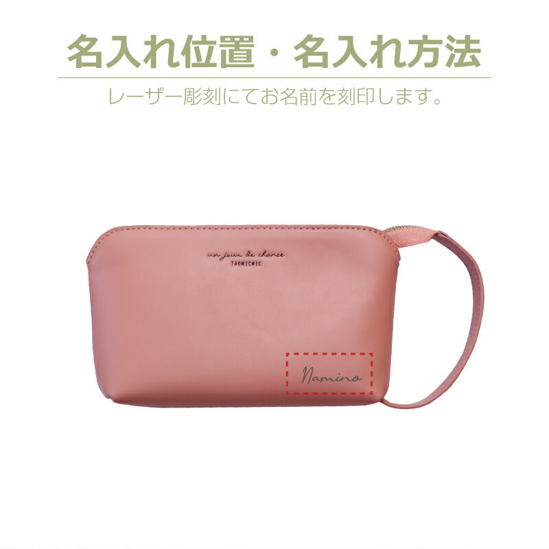 −ギフトにおススメな3つのポイント− 1.韓国で人気のブランドTAOMICMIC! 今やトレンドを生み出すことも多い韓国発のブランドTAOMICMIC。使い勝手とおしゃれを両立させたアイテムが多く、人気のブランドです。 そんなTAOMICMICから使いやすいハンドルが特徴のスリムポーチが新たに登場しました。 トレンド感あふれるカラーは全部で4種類。 ・フランボワーズ ・ピスタチオ ・ミルク ・キャラメル 大きめハンドルが持ちやすく、 これ1つに貴重品を入れて お出かけすることも出来ます。 旅行先や移動中では 掛けて収納することもできるので、 使い勝手も抜群です。 2.バッグに入れてもかさばらない スリムなデザインなので、 バッグインバッグとしてもお使いいただけます。 使いたいときにサッと取り出せて便利です。 丈夫なPUレザーを使用しているため型崩れしにくく、汚れや水滴もサッと拭き取れてお手入れも簡単。 トレンドカラーにアクセントとして入った ゴールドの金具が目を引きます。 ファスナー金具はブランドロゴの型押しで 高級感もUP。 自分用にもプレゼント用にも おススメのアイテムです。 3.スリムだけど大容量 見た目とは裏腹に、 大容量なんです。 内側にはファスナー付きのポケットもあり、 細かなものもすっきり収納できます。 化粧ポーチとしてはもちろん、 ガジェットポーチや小物入れ、 あるときはバッグとしてもお使いいただける、 使う人によって様々な顔を見せてくれるポーチです。 4.名入れで特別な贈り物に ポーチの下部には、 当店の専属スタッフによる お名前彫刻を無料で致します。 「 どうして名前入りが喜ばれるの? 」 生まれた時からずっと一緒に生きてきた「名前」。 普段あまりにも身近にあるので、 自分の名前のことを深く考える機会はありませんが 贈られた商品に自分の名前が刻まれていたらいかがでしょう。 その瞬間、“プレゼント”は“自分だけの 大切なもの”へと変化します。 そして贈ってくれた方の真心を感じ、 自然に笑顔がこぼれるのではないでしょうか。 名前はその人にとって唯一無二、かけがえのないものです。 私たちはそのお名前を大切に、贈る人、贈られる人、 両方の笑顔を想いながら商品を送り出しています。 当店のお名前彫刻は専門のスタッフが こだわりと自信をもって行っていますので、 1文字1文字つぶれることなく鮮明に刻印され、 ずっと消えずに残ります。 お客様の気持ちのこもったギフトを 永く愛着を持ってお使いいただけますように。 それが、私たち名入れギフトOkuluスタッフ全員の願いです。 【 無料ラッピング 】 当店オリジナルギフトボックスにお入れしてお届け。 箱入りだから特別なギフトシーンでも安心してお渡しいただけます。 ≪ こんなシーンにおすすめ ≫ ・ おかあさん ママ 母親 母 義母 お義母さん への 日頃の感謝を込めて ・ 母の日 の プレゼント に 実用的 なギフトをお探しの方に ・ 30代 40代 50代 60代 70代 母の日プレゼント に ・ 上司 先輩 後輩 の 転勤祝い 昇進祝い 定年退職 退職祝い の ギフトとして ・ 女友達への 誕生日プレゼントに ・ 彼女への クリスマス ホワイトデー のギフトとして |