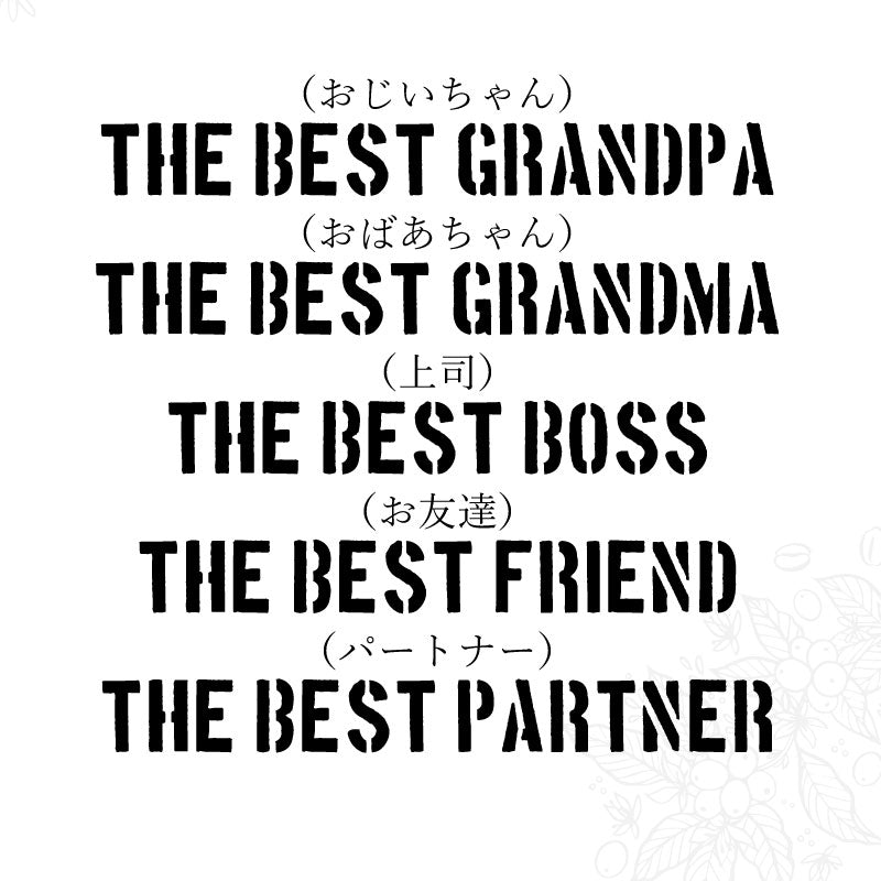 ギフトに贈るのに間違いない品質の珈琲と 話題性たっぷりの名入れミニチュア樽をセットに。 1)どう使う?可愛いミニチュア樽 国産杉を使った国内生産の小さな珈琲樽。 ギフトにはやっぱり日本製のものが安心。 実は男性スタッフにも高評価! 珈琲好きでなくとも、男心をくすぐるロマンあふれるデザイン。 植木鉢を入れるもよし、キッチンツール入れにするもよし。 見て楽しく、使って便利なインテリアとしてきっとご愛用いただけます。 ミニチュア好きやインテリアにこだわる方にもおすすめ。 2)スターバックス「ORIGAMI」 お店に行ったことはあっても このハウスブレンドは飲んだことがない、 という方も少なくないのではないでしょうか。 実はコーヒーにこだわる方にでも そうでない方にでも、 珈琲好きになら安心して贈れる逸品。 それがSTARBACKSのハウスブレンドです。 疲れている時にも、思い立った時にすぐ飲めるのがうれしい、手軽なドリップパック。 開けてから酸化しやすい大容量に比べ、 ドリップタイプは鮮度を保てるのがギフトとして安心なポイント。 一杯一杯、変わらぬ香りと味わいを楽しむことが出来ます。 3)お名前&年号彫刻 珈琲樽をイメージしたデザインで彫刻を施します。 お好きなお名前と年号をお入れするオーダーメイド。 消えないレーザー彫刻で、 世界に一つだけのギフトをお作りします。 もらった時の感動がずっと続く、記憶に残る特別感を演出。 珈琲樽にはお名前とメッセージ彫刻を施します。 例えばお父さんへ THE BEST FATHER SINCE○○○○ 意味:○○○○年からずっと最高のお父さん といった心温まるメッセージを彫刻。 父の日にはもちろん、退職祝いにもピッタリな 感動のギフトに。 10種類からお選びいただけます。 THE BEST MOTHER(お母さん) THE BEST FATHER(お父さん) THE BEST SISTER(姉妹) THE BEST BROTHER(兄弟) THE BEST FRIEND(お友達) THE BEST BOSS(上司) THE BEST FAMILY(ご家族) THE BEST GRANDPA(おじいちゃん) THE BEST GRANDMA(おばあちゃん) THE BEST PARTNER (パートナー) 一見わからない名入れ、気付いた時のサプライズをお約束します! ≪こんなシーンにおすすめ≫ ・珈琲 コーヒー好き への贈り物に ・父の日 母の日 敬老の日 に |