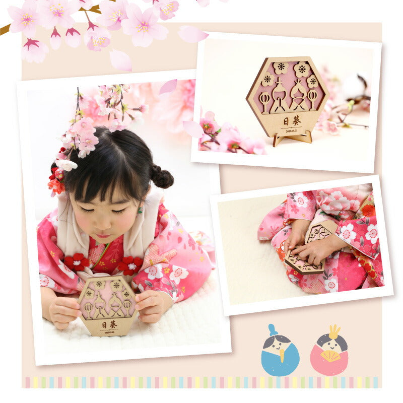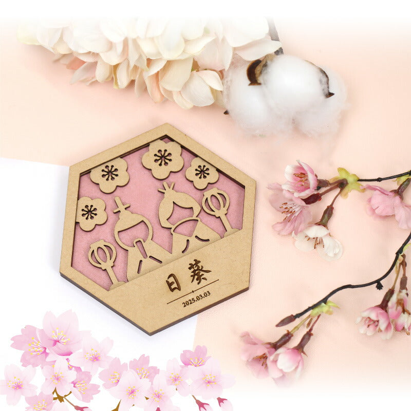 当店オリジナルの「寿ぎ札(ことほぎふだ)」は、ひなまつりの雰囲気をより華やかに引き立てるためにデザインされた、上品でしっかりとした作りの立札です。 1)自然素材でインテリアにぴったり 当店で使用しているMDF(中密度繊維板)は、自然素材に近い仕上がりで、温かみがあり、どんなお部屋のインテリアにも溶け込みます。 また、当店の人気商品「レターバナー」と同じ素材を使用しており、安心してお使いいただけます。 コンパクトなサイズで、飾る場所を選ばないため、どんなスペースにもぴったりと収まり、家のどこでも手軽にお飾りいただけます。 2)独自のデザインで華やかさをプラス 当店の「寿ぎ札」は、三枚重ねのMDFを使用しており、他の一枚板とは異なる立体感を持っています。これにより、より深みと厚みが生まれ、シンプルながらも存在感のある仕上がりです。 背景色には優しいピンク色を使用しており、ひなまつりの可愛らしいテーマを一層引き立てます。 このピンクの背景色が、お雛様や飾り付けとの調和を大切にし、見る人の目を引きます。 3)消えないレーザー彫刻で長く楽しめる プレートに施したレーザー彫刻は、文字が色あせることなく、永くご使用いただけます。 お名前や日付が美しく刻まれ、記念日や特別な日の思い出としてずっと残ります。 刻まれた文字は鮮明で、使い込むほどに味わい深くなります。お子さまが成長した後も、ずっと大切に保管できるアイテムです。 |