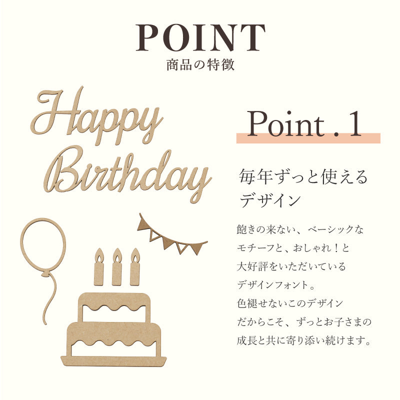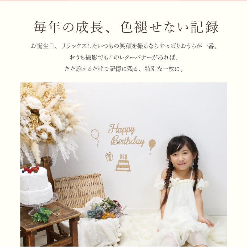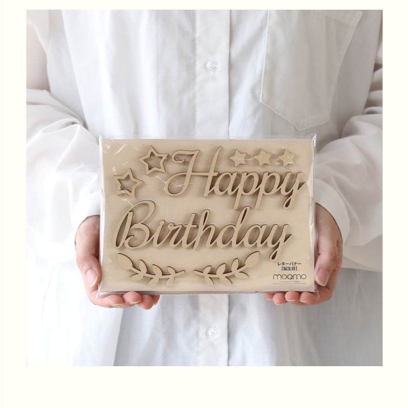 誕生日を祝う特別な日にぴったりの木製バナー。 シンプルでありながら、カジュアルすぎず、 上品な飾り付けが映える仕上がりを目指しました。 1) おうちでプロ級の写真が撮れる moqmoブランドのモクモバナー《木製レターバナー》から、誕生日バージョンが新登場! 「自由な発想の木製プロダクト」を提案するmoqmoから、誕生日に最適なおしゃれなレターバナーをお届けします。 [ プロデザイナー監修 ] 誕生日の特別な雰囲気を演出するデザインにこだわりました。 飾るだけで、誕生日の空間が華やかに変わります。 バルーンやケーキと並べてもバランスが取れるフォントデザインを採用。 [ ハイクオリティ ] 木製品の加工に携わる職人が製作するため、品質も安心。 職人技が光る仕上がりで、長く愛されるアイテムとなります。 2) 誕生日にぴったりのデザイン シンプルで洗練されたデザイン。 お子さまやご家族、友人たちとの特別な瞬間を彩ります。 「Happy Birthday」の文字に加え、パーティーハットやバルーン、ケーキなど、誕生日に相応しいモチーフが揃っています。 ケーキはろうそくの数が変えられるのもこだわりポイントです。 【レターバナー】 ・Happy ・Birthday 【モチーフ】 ・星 ・葉っぱ ・ガーランド ・パーティハット ・バルーン ・ケーキ ・音符 ・プレゼント 3) 温もりを感じる木製レターバナー【moqmo】 MDFを使用した環境に優しい木製レターバナー。 壁に簡単に貼ることができ、繰り返し使用することも可能です。 当店のモクモバナーにはこんな嬉しいお声が届いています。 「木の温かみが感じられる上にデザインが素敵で、写真映えします。」 「誕生日の特別な日にピッタリで、とても満足です。」 しっかりとした作りながら、木の温もりを感じられる優しい素材感です。 ≪こんなシーンにおすすめ≫ ・お子様や大人の誕生日の記念撮影に ・パーティーや誕生日会の飾り付けに ・「Happy Birthday」のお祝いに最適なデコレーション ・1さい 2さい 3さい 4歳 5歳 毎年の記念フォトに |