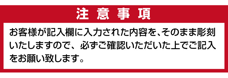 | 名入れ | 彫刻する文字は「入力欄」へご記入下さい。 【お名前】ローマ字のみ ※日本語不可 文字数は10文字までとさせていただきます。 ・上記以外は当店で変更します ・文字サイズは当店で調整します |