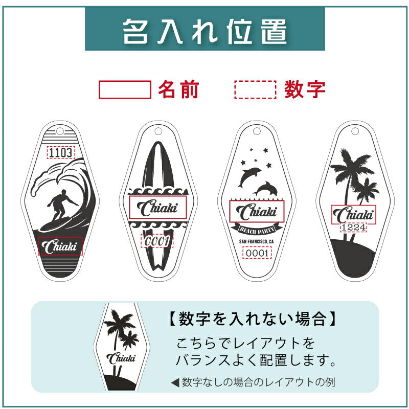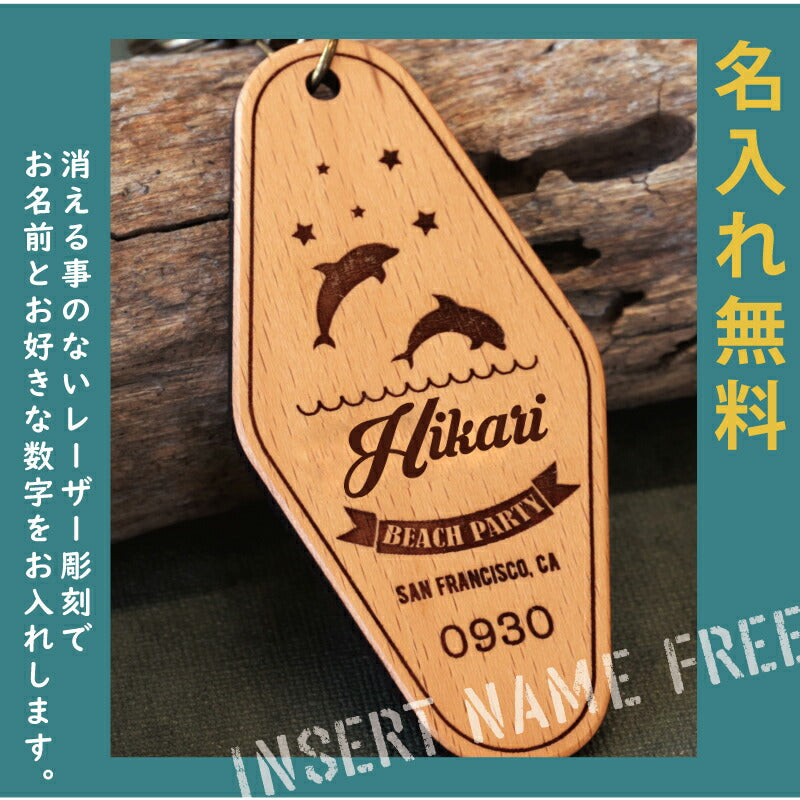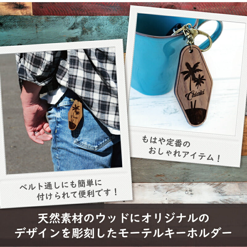 \自分だけの木製モーテルキーホルダー/ モーテルキーホルダーとは、アメリカのモーテルで使われている、 部屋の鍵のキータグを模したキーホルダー。 インスタ SNS で話題にもなった、定番のおしゃれアイテムです! ナスカンをベルトループに取り付ければ、 存在感のあるひし形のタグがファッションの一部に! 自然木の優しい触感と落ち着いた色味ですので 男女、年齢を問わず、お使いいただけます。 1. オリジナルデザイン デザインは当店専属デザイナーによるオリジナル。 カリフォルニアのビーチをイメージしたデザインです。 4種類から選べるから 友達 彼氏 彼女 とお揃いにしても楽しい♪ ・サーファー ・サーフボード ・イルカ ・ヤシの木 さりげなくデザインに溶け込む 名入れ。 よく見たら自分の名前が入っている!と喜びも2倍に。 2. こだわりの素材 『木の温もりを感じる 木製キーホルダー 』 厚さ4mmの天然木を使用し、ナチュラルな風合いに仕上げました。 一般的なプラスティック製と違い、 手に取るたびに木の温かみを感じられます。 また、鍵に当たった時も カタカタ と優しく自然な音になります。 【選べる木材2種類】 ブナ・・・きめ細やかな木目と明るいカラー ウォールナット・・・重厚感のあるダークブラウンで、ヴィンテージ感のある色合い どちらの木も軽いのに堅く、傷がつきにくいのが特徴。 木工職人による丁寧な面取りと表面加工で、 高級感のあるすべすべな手触りです。 また自然木は経年変化で、時間が経つほどに深みを増していくから、 愛着をもってお使いいただけます。 『 アンティーク感のある金具 』 落ち着いた色味のアンティークゴールドの金具は おしゃれにビンテージ感を演出してくれます。 キーリングとは別にナスカンが付いていますので 簡単にバッグやベルトループに取り付けることができ、 鍵がバッグの中で迷子になることもありません。 3.数字 ・ お名前入れ キーホルダーにお名前と数字を入れることができます。 4桁まで入る数字は 誕生日 記念日 ラッキーナンバー などなんでもOK! お好きな数字をご指定下さい。 名入れギフト専門店の当店にて、気持ちを込めて彫刻いたします。 【 うれしい無料 お名前 彫刻 】 「 どうして名前入りが喜ばれるの? 」 自分の名前が入った商品は世界にただ一つだけ。 贈った人に大事に使ってほしい、想いが伝わります。 さらにお名前彫刻はずっと消えずに残るから、 永く愛着を持って使っていただけます。 だから、「名入れギフト」は大切な人に感謝の気持ちを 伝えるのにぴったりなおくりもの。 私たちは、贈られた人も贈った人も みんなが笑顔になれる商品をお届けします。 ≪こんなシーンにおすすめ≫ ・彼氏 への バレンタイン プレゼントに ・彼女 へ ホワイトデー の お返し に ・友達 先輩 への 誕生日プレゼント に ・友達 恋人 とお揃いの ペアキーホルダー |