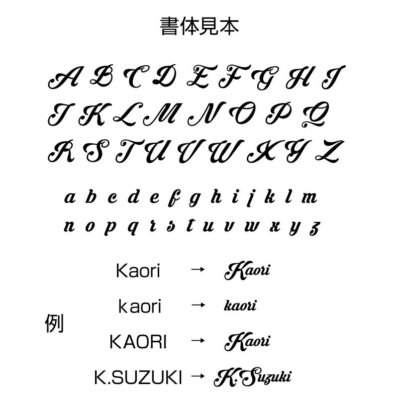 彫刻する文字は「入力欄」へご記入下さい。 【お名前】ローマ字のみ ※日本語不可 文字数は10文字までとさせていただきます。 ・上記以外は当店で変更します ・文字サイズは当店で調整します |