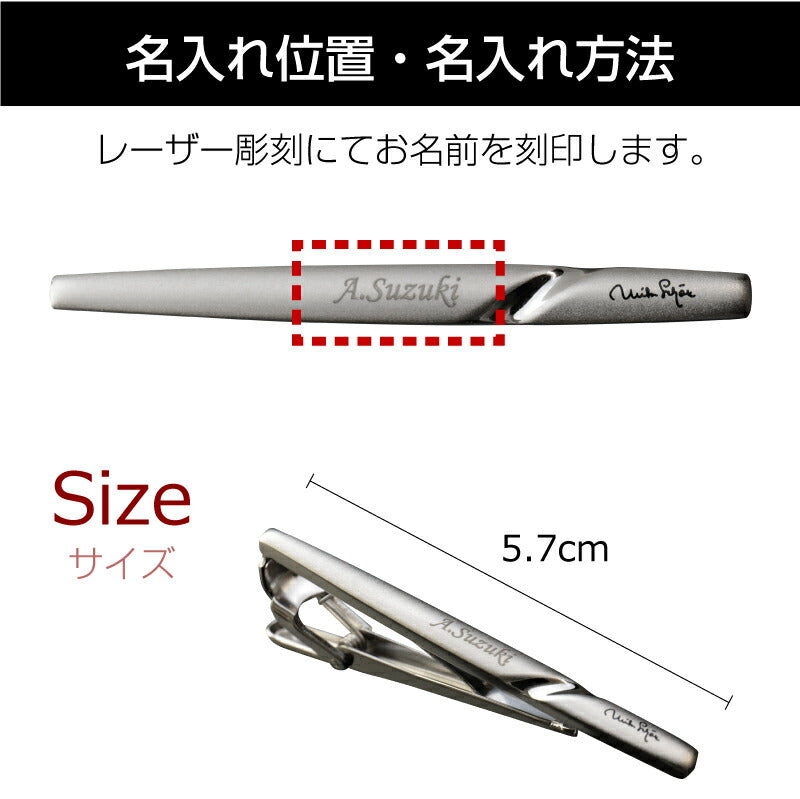 デキる男を演出するエレガントなデザイン。 ネクタイの形をきれいに保つため、スーツとの擦れを防ぐために使用されるネクタイピンですが、いつものスーツスタイルをワンランク上に彩るおしゃれアイテムでもあります。 キズ・指紋が付きにくいよう、表面には艶消し加工を施しております。 |