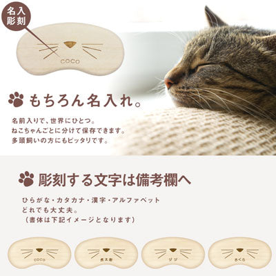 | \ ひげの数だけ幸せになれる?! 猫のひげは縁起物。 / “見つけたらちょっとラッキー”な気分になれる、猫のひげ。 捨てるには何となくさみしくて、ティッシュに包んで置いてみたり。 何に入れておこう?と悩んでいるうちに無くなってしまった…なんてことも。 このケースにしまえば、もっとラッキーになれるかも? かわいい愛猫の抜けた お髭 どうしてますか? 猫好きならだれもが通る、猫のひげの保管へのお悩み。 この「名入れ ねこのひげケース」ならそんなお悩みもスッキリ解消! - だから、猫好きさんへのギフトにもぴったり。3つのおすすめポイント - 1. 保管に優れた「 桐製 」 せっかくとっておいたひげ、無くしてしまったことはありませんか? 桐材は通気性が良く、防湿・抗菌効果があり、腐食に強いため長期保管には最適の素材。 防虫、殺虫効果があることでも知られています。 その桐材を滑らかになるまで職人が妥協を許さず丁寧に磨いています。 すべすべとした手触りを、是非手に取ってお確かめください。 しっかりとケースにしまっておけば安心感が違います!! 2. 可愛いお鼻とおひげのデザイン&消えないお名前彫刻 “うちの子、嬉しい時にはおひげがピン、と伸びてたなぁ〜…” そんな思い出と一緒にずっと残しておきたい。 大切に保管していくものだからこそ、 お名前が「消えない」レーザーによる名入れ彫刻。 さらに、ひとつひとつ木目や色が異なるから世界にただ一つだけ。 あたたかい木のぬくもりで、ワンちゃん・ネコちゃんを想う気持ちも大切に包み込みます。 3. 猫のひげは縁起物! 世界中でお守りとしても重宝されているほど、縁起物として知られるねこのひげ。 日本では金運アップ、ヨーロッパでは恋愛運アップのお守りとしても有名。 なにより、大切な猫ちゃんがずっと見守ってくれているような、 そんな気持ちにさせてくれるほっこりやさしいねこのひげケース。 飼い主さんが猫ちゃんを大切に想う気持ちがきっと伝わります。 男 女 問わずにお部屋に馴染むシンプルなデザインだから、贈り物としても最適な逸品です。。 せっかく集めた髭の収納に困っていたご主人様も、大事に飼っていた猫ちゃんの思い出をずっと大切に保管したい方にも。 今まではヒゲ集めしていなかった方も、このケースに入れたらとっておきの“たからもの”になります! |
