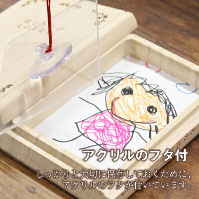 - だからギフトにおすすめ。3つのポイント - 1. 飾っておきたくなるデザイン ※2016年度グッドデザイン賞受賞商品。 大切な我が子の成長のものがたりを一冊の本に… 本棚に飾れる可愛いブック型ケースです。 いつでも目の届く本棚にもスッキリ収納できるのはもちろん、 コンパクトだからインテリアとして飾っても。 ふとした時に開いて、我が子との思い出に浸る。 子供の成長を感じる、ジーンとする瞬間。 大切な思い出をすぐ手に取れる場所におけば、 きっと、家族みんなが笑顔に。 素材にはこだわりたい。 「桐」は保管に優れた通気性の良い素材。 軽くて気密性が高く防腐・防虫効果があるとも知られています。 当店の職人が一つずつ手作業で磨く桐箱。 天然の桐だから、長い年月を経て表情が変わっていきます。 お子様が大きく成長していく過程を見る様に、経年変化をお楽しみいただけます。 吸盤もついているから取り出しやすい。 はじめて描いた作品はもちろん、 ママ・パパの 似顔絵 や 自画像 でも。 その他はじめて上手に書けた絵や 思い入れのある作品やお気に入りの作品など。 「 一番のお気に入りはこれ! 」 「 上手に描けたね 」 親子で楽しみながら楽しく収納。 家族で交わした素敵な会話も思い出に。 十数年後、タイムカプセルを開ける様にこの本を開き、 家族みんなで思い出話をするのが楽しみになる、 素敵なメモリアルボックスです。 専門店ならではの技術で、ギフトにお名前を彫刻します。 「名前」は我が子の幸せを願い考え抜くもの。 だからこそ名前が入ったギフトは特別です。 記念すべき、生まれて初めての名前入りギフトに。 色とりどりのクレヨンで描いた家族みんなの似顔絵。 思い出す、大好きなママとパパと過ごした日。 「 大切にしてくれてありがとう 」 こみ上げる感謝の気持ち。 たくさんの思い出を永い間しっかり保存します。 “ 大事に育ててくれたんだ ” 親が大切に想う気持ちが子どもに伝わるメモリアルグッズです。 生まれたこどもの数だけある いのちの「はなし」。 本棚に本を並べるようにしまえる、 かけがえのない想い出を「文庫」のカタチの桐箱に。 |