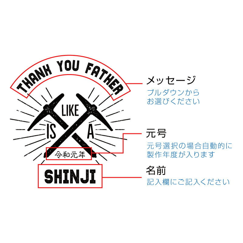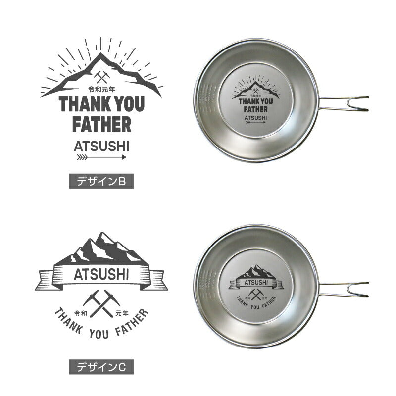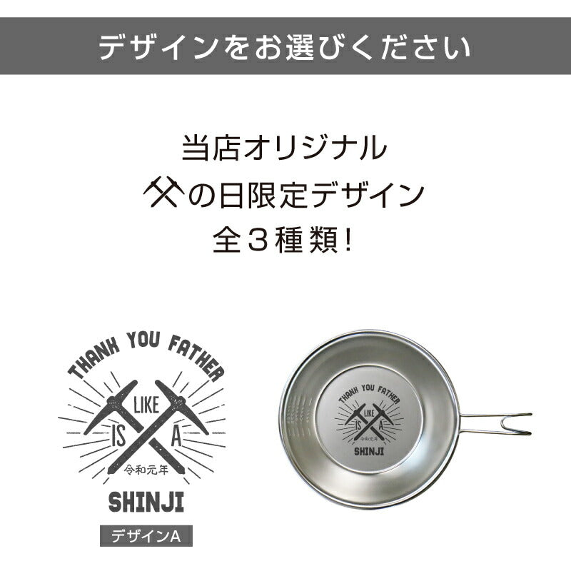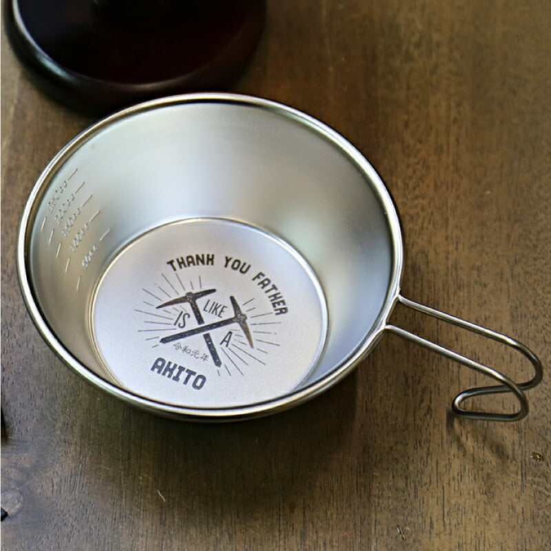 目盛り付き&直火OK&日本製・・・ キャンパーも納得の性能に おしゃれなオリジナルデザイン彫刻♪ だからギフトにぴったり。 - 3つのおすすめポイント - 1. 選べるオリジナルデザイン ≪ 全3種類 父の日 限定デザイン ≫ ・デザインA ハンマー で模した「 父 」の ロゴ が映えるデザイン 父の日 のプレゼントに迷ったらこれ! ・デザインB 力強く刻まれたメッセージが印象的! 感謝 の声を大にして伝えたい人に ・デザインC 名前を お洒落 にあしらった 山 デザイン! アウトドア 好きな お父さん におすすめ さりげなくデザインに溶け込む 名入れ。 よく見たら自分の名前が入っている!と 喜びも2倍に。 キャンプ では自分の目印にもなります。 使わないときにぶら下げておくにも、 デザイン入りならサマになります♪ ≪ 全4種類 メッセージ 彫刻 ≫ ・父 に伝える 想い 「 THANK YOU FATHER 」 ・父の日 祝い に 「 HAPPY FATHERS DAY 」 ・誕生日 祝い に 「 HAPPY BIRTH DAY 」 ・特別な 感謝 を 「 SPECIAL THANKS 」 贈るシーンに合った メッセージ が選べるから、気持ちが伝わる! 普段なかなか言えない感謝の言葉をカタチにして届けることができます。 ≪ 記憶 に残る元号彫刻 ≫ 元号彫刻を希望するお客様のみ、デザインの中に製作年度を彫刻いたします。 特別な日に贈ったプレゼントだから、その瞬間をいつまでも 記念 に残したい! シェラカップの底を目にするたびに、贈った時の喜びが蘇る。 何年経っても色褪せない 想い出 になります♪ おしゃれなだけでなく、しっかりとした機能性で実用的。 ・扱いやすいステンレス製 で 直火OK。 ・ソロキャンプ にも便利な一人分を作るのにちょうどいい300ml ・目盛り付きで便利&軽量カップ代わりにも使える ・重ねてコンパクトに スタッキング 可能 機能的にもしっかりしているから、 炊飯 料理 に使えるのはもちろん、お酒 飲み物 スイーツ を入れるのだって この シェラカップ があれば完璧! 大きすぎず、ちょうどいい大きさがうれしい。 当店オリジナル巾着袋付き。 持ち運びの際の傷を防いでお洒落に収納可能。 お洗濯できるから、衛生的にお使いいただけます。 ケース を別で購入する必要無く、便利です。 「 どうして名前入りが喜ばれるの? 」 自分の名前が入った商品は世界にただ一つだけ。 贈った人に大事に使ってほしい、想いが伝わります。 さらにお名前彫刻はずっと消えずに残るから、 永く愛着を持って使っていただけます。 だから、「名入れギフト」は大切な人に感謝の気持ちを伝えるのにぴったりなおくりもの。 私たちは、贈られた人も贈った人もみんなが笑顔になれる商品をお届けします。 ・ CAMP 初心者 の おとうさん への ギフト として ・ キャンプ 好きなソロキャンパー の お父さん へ ・ バーベキュー レジャー おうちキャンプ ベランピング 家族 と過ごす時間を大事にしてくれる パパ へ ・ 釣り トレッキング 登山 大好き! アクティブな 父 へ ・ キャンプ用品 アウトドア用品 はいいものを選びたい こだわり タイプの 父さん へ |