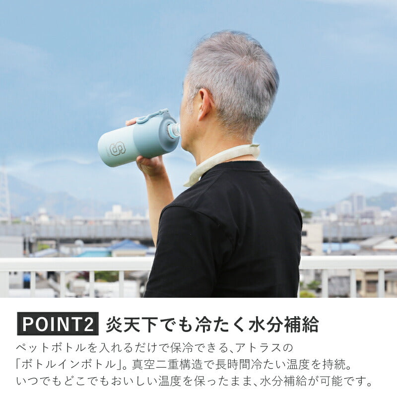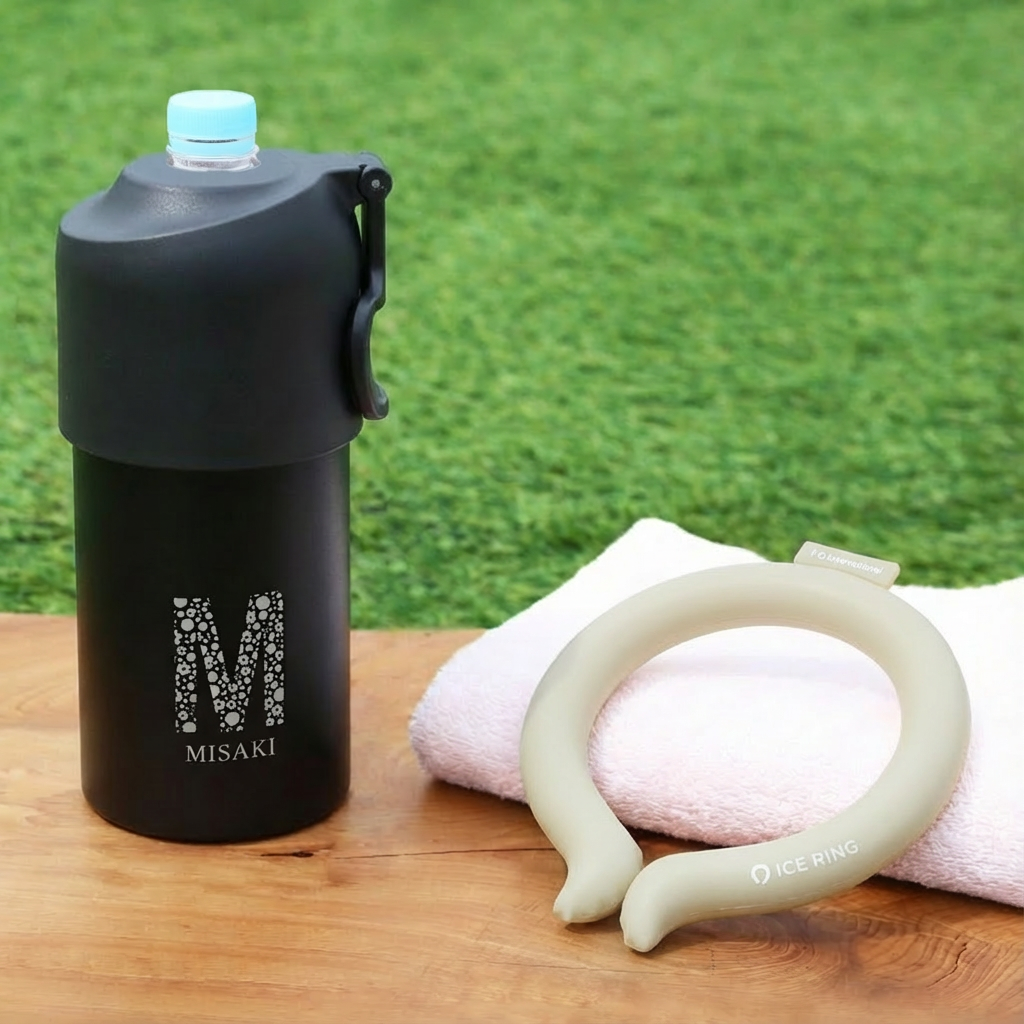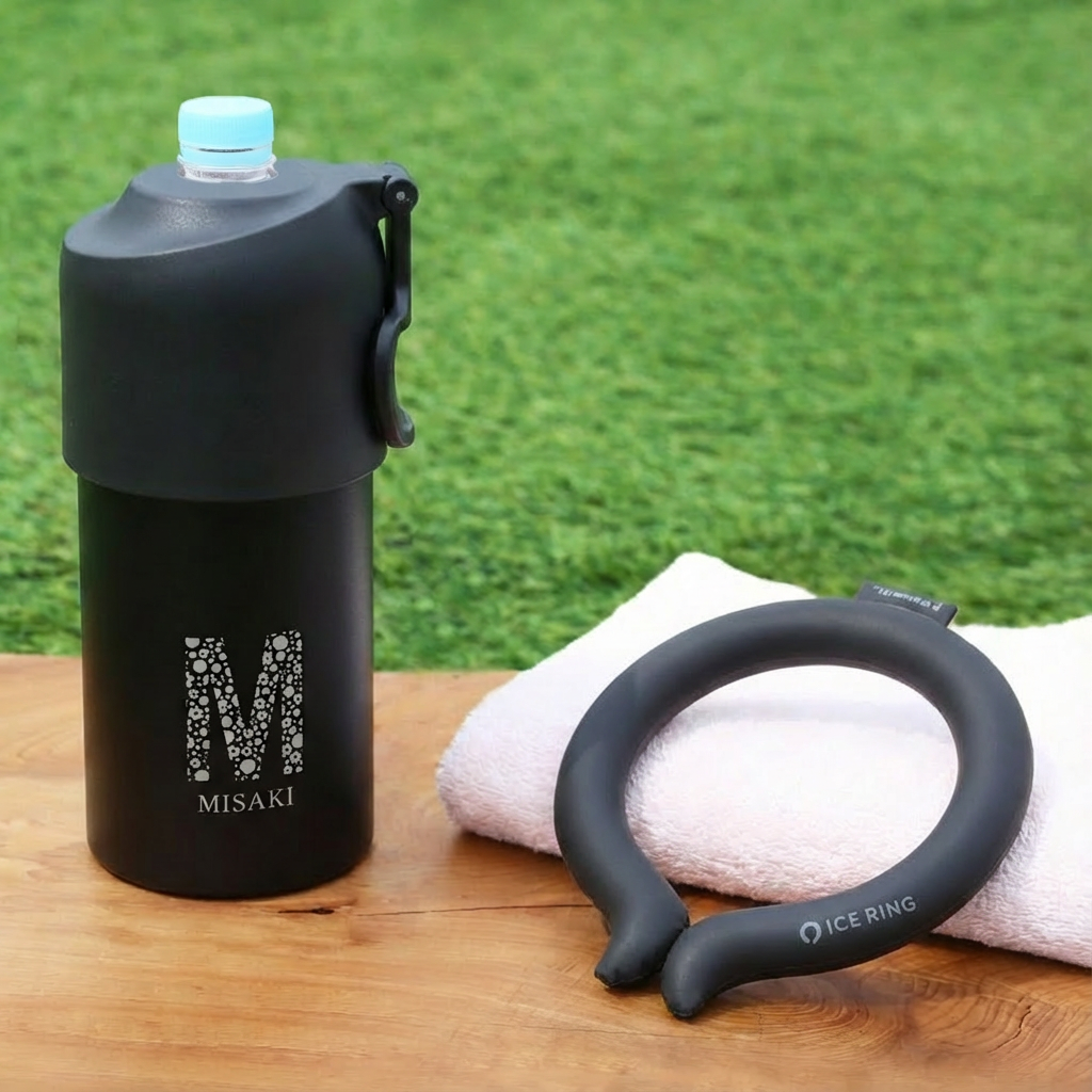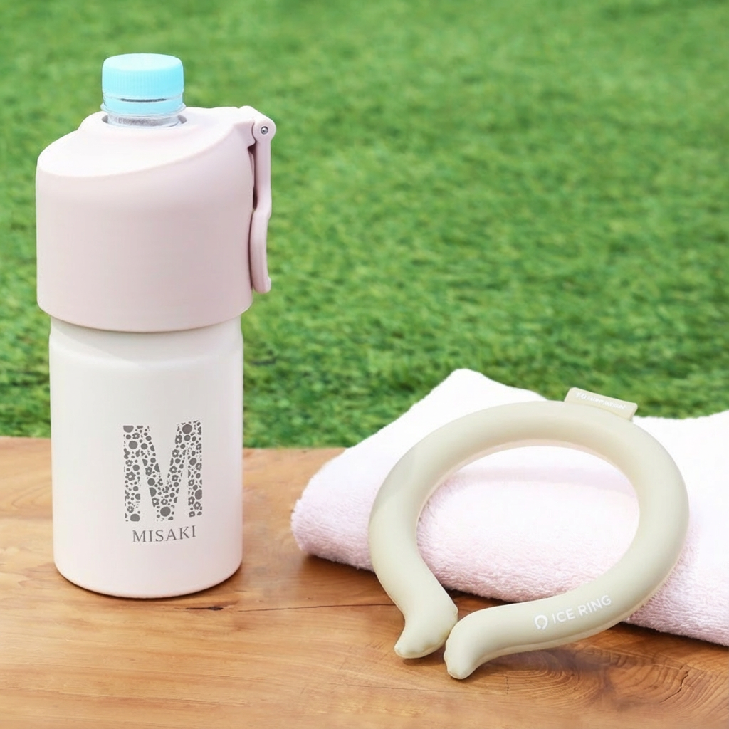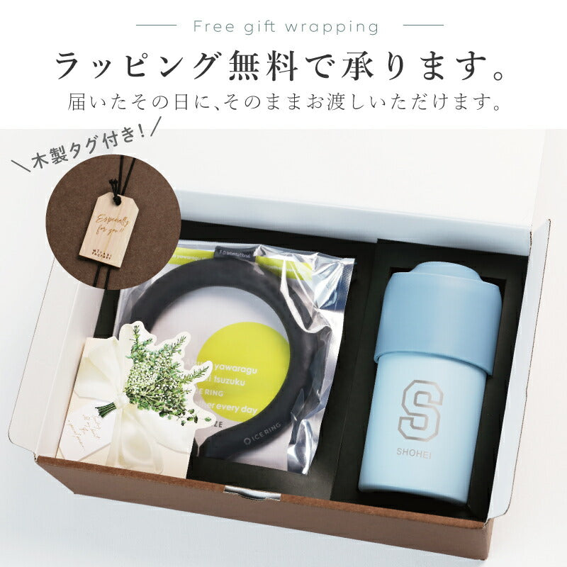 暑さに負けないで! 熱中症対策が出来る、 夏にぴったりな贈り物。 最強熱中症予防ギフトにおすすめ 3つのポイント 1)アイスリングでクールダウン 高機能ネッククーラー「ICE RING?_アイスリング」 ICE RING? は、SUO製品の別注、F・O・インターナショナルオリジナルデザインアイテム。 いわば仕様はSUO、デザインはFOインターナショナル、といったお品物。 28℃以下で自然に凍結し、屋外屋内どこでも繰り返しお使いいただけます。 首元を冷やすことで、全身の熱をクールダウンさせてくれるICE RING?。 直接肌につけることで身体の熱を吸収し、心地よくクールダウン。 身体にこもった熱を逃がします。 ■「ICE RING?」はF・O・ホールディングスの登録商標です■ - 4つのメリット - 1:28°C以下で自然凍結 2:結露しないから快適 3:適度な冷却が持続 4:何度でも繰り返し使える 2)炎天下でも冷たく水分補給 ペットボトルがそのまま入るホルダー アトラスの「ボトルインボトル」 当店で大人気のペットボトルカバー。ペットボトルをそのまま入れるだけで朝入れた冷たいお茶のペットボトルが夕方まで冷たい状態!約6時間程度は美味しく飲めました。 ※サイズ・ご使用環境により異なります。 - 4つのメリット - 1:ペットボトルを入れるだけで長時間冷たい温度をキープ 市場で売れ筋の500ml〜650mlの90%をカバー 2:結露しないから快適 オフィスやバッグの中も快適 3:持ち運びに便利な折りたたみ式ハンドル付き 4:サッとお手入れ簡単洗いやすい 3)気持ちが伝わるお名前入り ペットボトルホルダーにお名前とイニシャルを彫刻します。 ずっと消えない彫刻だから安心してお渡しいただけます。 《上品ブーケカード付》 素敵なメッセージ入り、ブーケのような紙製パーツ付き。 - メッセージ内容 - Sending all my heart. あふれる心お届けします。 for a special person... 大切な人へ... 箱を開けた瞬間の感動をお約束します。 【ギフトにあんしん、正規品】 誰が使っても問題の無い仕様で作られているから、 安心してプレゼントとしてお渡しいただけます。 ・植物由来 内容物については、国際基準の認定を受けた植物純度の高い冷却素材「PCM」を使用し、製造しています。(コスモス認証を取得) 水より約30%比重が低く軽量の為、長時間装着しても負担が少なく快適です。 ・直接肌に触れても快適 プリントを内側に施すことで、色落ちやプリント剥がれの心配はございません。 結露をしない素材を使用している為、直接肌に触れても快適です。 28℃で凍結するため、冷たすぎず適度な温度であり、凍傷などの心配はありません。 ・国内基準の品質 日本国内で液状化させ、商品に不備がないか検品・検査を行っています。 〔 こんなシーンでおすすめ 〕 ・首を冷やすリング ネッククーラーリング ・病院 入院中 オフィス 学校 会社 塾 習い事 運動会 ・バス 電車 通院 通学 通勤 散歩 家事 に ・屋外 野外 ライブ コンサート 夏フェス ・介護 保育 工事現場 作業 工場 警備 などの仕事現場で ・ロゴ入れでノベルティとして(※要別途追加料金) ・会社名などをプリント、社員の熱中症対策に ・創立記念 周年記念 の 記念品として ・卒団記念品 野球 部活 部活動 卒業記念品 として ・ネックバンド クールリング ネックリング 熱中症予防 |