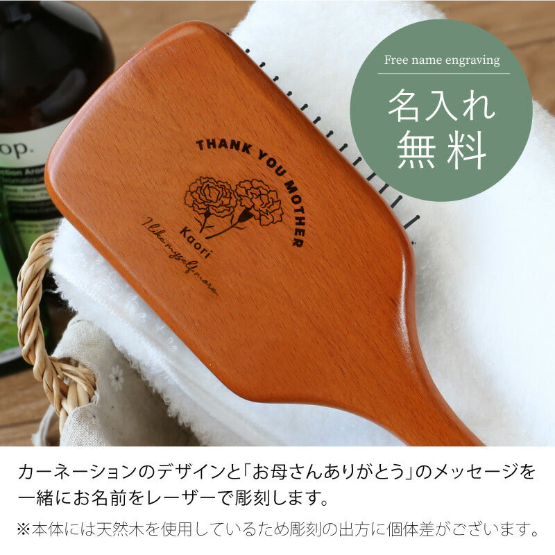 健やかな髪を目指すすべての人におススメできるAVEDAのパドルブラシに、 当店オリジナルデザインを施した、特製ギフトをご用意しました♪ 男女問わずヘアケアに注目が集まっている令和時代。 当店が贈るヘアケアギフトを おすすめポイント3つとともにご紹介します! 1. 世界で人気の”AVEDA パドルブラシ” 美意識の高い女性の間で人気の”AVEDA”。 サンスクリット語の「All Knowledge(すべての智慧)」という言葉が由来の ヘアケア・ボディケア・スキンケアを扱うプロフェッショナルブランドです。 創設者であるホースト・レッケルバッカー氏のアーユルヴェーダ(注1)に根ざした理念を引き継ぎ 高品質のヘアケア用品を地球環境に負担をかけない製法で日々生み出しています。 その中でも 「AVEDAといえば?」 と聞かれたときに多くの人が答えるであろうアイテムが”パドルブラシ”です! 大ぶりの四角いブラシでブラッシングしたときに感じる気持ちよさ。 ブラシ中央下部にある空気穴から空気が抜けることで、頭皮への負担を和らげ、 ほどよい刺激でケアします。 マッサージにより頭皮のコリや血行が良くなることで、顔の血行も良くなるので、 フェイシャルケアも兼ねることができます。 また、ぬくもりのある木製の柄には天然木を使用しているので、1本1本異なる風合いが楽しめるんです♪ 男女問わず使えるデザインなので、男性へのプレゼントとしてもおススメです♪ (注1:インドに伝わる伝統医学) 2. 背面にさりげなく入ったメッセージ&お名前彫刻 ブラシの背面には、母の日にピッタリなカーネーションのデザインと、 贈る方のお名前を彫刻することができます! 「 どうして名前入りが喜ばれるの? 」 生まれた時からずっと一緒に生きてきた「名前」。 普段あまりにも身近にあるので、 自分の名前のことを深く考える機会はありませんが 贈られた商品に自分の名前が刻まれていたらいかがでしょう。 その瞬間、“プレゼント”は“自分だけの 大切なもの”へと変化します。 そして贈ってくれた方の真心を感じ、 自然に笑顔がこぼれるのではないでしょうか。 名前はその人にとって唯一無二、かけがえのないものです。 私たちはそのお名前を大切に、贈る人、贈られる人、 両方の笑顔を想いながら商品を送り出しています。 当店のお名前彫刻は専門のスタッフが こだわりと自信をもって行っていますので、 1文字1文字つぶれることなく鮮明に刻印され、 ずっと消えずに残ります。 お客様の気持ちのこもったギフトを 永く愛着を持ってお使いいただけますように。 それが、私たち名入れギフトOkuluスタッフ全員の願いです。 3. 当店オリジナルデザイン入りのコットン巾着付き 至福のマッサージタイムを出先やお泊りの際に楽しみたい方のために、 持ち運びに便利な収納袋をつけました! コットン製のナチュラルな巾着袋にワンポイントデザインを入れていますので、 年代問わず使えますよ♪ ≪こんなシーンにおすすめ≫ ・ 友達への 誕生日プレゼント に ・ 母の日 父の日 での贈り物 ・ 自分へのご褒美 に ・ 美容グッズ のプレゼントとして ・ クリスマス ホワイトデー のプレゼントとして |
