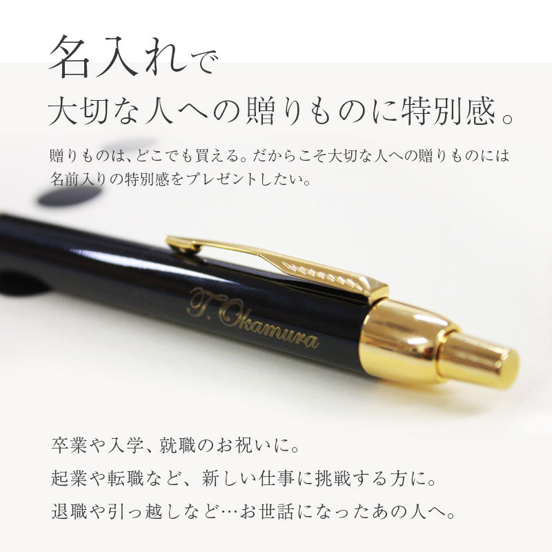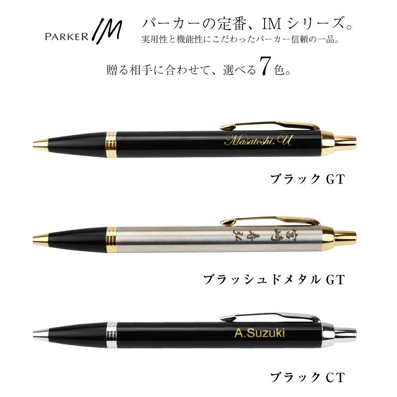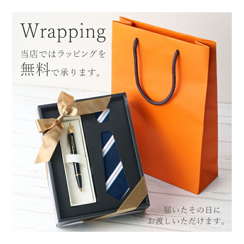 デキる社会人は持ち物も上質に! 本当に""いいモノ""を身に着けることで 毎日の仕事のモチベーションもUP♪ 1)社会人に必須な2点セット 数あるパーカーシリーズの中でも、 「 IM 」は使いやすさを重視しているのが特徴。 気品の中にも優れた実用性を持ち合わせています。 いまでも年配の方からの 人気 は高く、 上司 や目上の方からの印象も非常に良いボールペン。 だから、パーカー IM は社会人にぴったりなんです。 さらに、ビジネスシーンにぴったりなハンカチをセットに。 大人の男性ふさわしい、品のあるシンプルなデザイン。 良い印象で毎日の生活を送りたい ビジネスマン にぴったりな2点セットです。 就職祝いをイメージして作成した完全オリジナルデザイン。 遊び心あるネクタイデザインが おしゃれ な当店だけのギフトボックスです。 箱を開けた瞬間の喜びは忘れられないものになるはず♪ 高級筆記用具ブランドといえば、 真っ先にパーカーの名を挙げる人も少なくはないでしょう。 PARKER(パーカー)は1888年に生まれたイギリスの 文房具 ブランドです。 高い技術力で革新を続けてきたその品質は、 世界に誇るべきものとなっています。 芸術品のような美しい仕上がりでいて、 書きやすく耐久性に優れているところが、 多くの人から支持されてきました。 「世界でもっとも愛されるペン」と称されるだけあって、 日本でもその知名度はかなりのもの。 バブル世代には3種の神器とも呼ばれていました。 持ちやすい太めのタイプの軸だから、長時間使っても疲れにくくて書き心地も抜群。 また、ペン先がステンレススチール素材となっていて耐久性にも長けています。 長年愛用できるので、 仕事でよく ペン を使うビジネスマンなど、 日常生活で 筆記用具 を使うことが多い男性にもおすすめ。 大人の男性が持つにふさわしい高級ボールペンです。 安心の保証書付きでアフターケアもばっちり。 バレンタイン や 父の日 に、感謝の気持ちを伝えるギフトとしてもピッタリです。 身だしなみを整えることも社会人としてのマナー。 何より大切なのは清潔感です。 そのための必需品の一つがハンカチです。 こちらは薄手の布製ハンカチだから、 かさばることなく持ち歩けます。 通勤や外回りなど、汗をかいたときにもさっと取り出せ 身のこなしもスマートに。 今では誰でも持ち歩くことが必然となったハンカチ。 ですが、奇抜で派手なデザインはビジネスの場ではあまりふさわしくないもの。 落ち着いたネイビーをベースに ストライプ柄の入ったこちらのハンカチは、 使うシーンを選ばず、クールな印象を与えてくれます。 7色のカラーバリエーションが魅力。 相手の好みや、使うシーンを考えて選べます。 ・ブラック×ゴールド ・シルバー×ゴールド ・ブラック×シルバー ・ブルー×シルバー ・ダークシルバー×シルバー ・ホワイト×シルバー ・ロイヤルブルー×シルバー パーカー IM ボールペンに お名前を彫刻いたします。 当店自慢のレーザー加工による名入れサービスは、 職人の手でひとつひとつ丁寧に施しております。 彫刻したお名前は消える事がございませんので、 贈り物として大変喜ばれます。 「 どうして名前入りが喜ばれるの? 」 自分の名前が入った商品は世界にただ一つだけ。 贈った人に大事に使ってほしい、想いが伝わります。 さらにお名前彫刻はずっと消えずに残るから、永く愛着を持って使っていただけます。 だから、「名入れギフト」は大切な人に感謝の気持ちを伝えるのにぴったりなおくりもの。 私たちは、贈られた人も贈った人もみんなが笑顔になれる商品をお届けします。 ・息子 の 成人祝い 内定祝い 就職祝い 入社祝い に ・社会人デビューする 彼氏 に お祝い として ・父の日 誕生日 の お父さん への プレゼント に ・栄転祝い 就任祝い 昇進祝い に 社長 上司 先輩 後輩 へのギフトとして ・転勤祝い 退職祝い 送別会 での 餞別 に ・お世話になった 恩師 や 先生 に |