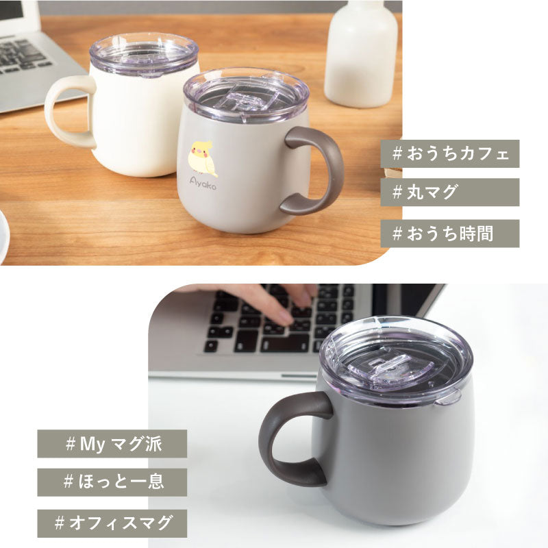 人気の「ぽてっと小鳥さん」シリーズから、ついにマグカップが登場! 特許取得の静音スライド蓋と、真空断熱の高機能ボディ。 おしゃれでかわいいだけじゃない、毎日使いたくなる実用派マグです。 ●だからおすすめ3つのポイント 1)水滴のとびちり“0”を実現させたこだわりの蓋 ・特許取得のグリップスライド機構で開閉がなめらか ・指1本で軽く開けられる操作感が快適 ・静音設計でオフィスや夜間の使用にもぴったり ・透明蓋だから残量が見やすく、飲み頃も分かる安心設計 2)真空断熱構造でおいしさキープ ・保温67℃以上(1時間)・保冷も長持ち ・金属臭が少なく飲み物本来の風味を楽しめる ・熱すぎず、冷たすぎず、ちょうど良い温度をキープ 3)使いやすく、癒やされるデザイン ・幅広ハンドルで手にしっかりフィット ・広口径(約76mm)でドリップもそのままOK ・コロンと丸いフォルムが“ぽてっとかわいい”印象 ・チャコール/バニラ/アッシュ/イエロー/ピンク/パープルの6色展開 - ぽてっと小鳥さん&お名前プリント - 人懐こくてペットに人気の小鳥たち♪ 中でも特に人気の ・シマエナガ ・セキセイインコ ・オカメインコ ・コザクラインコ ・ボタンインコ ・文鳥 を当店専属イラストレーターが描きおろしました。 ぽてっと愛らしいフォルムの小鳥たちに心もほっこり♪ カラーバリエーションも豊富にそろえて、その数なんと40種類。 インコ・文鳥を飼っている愛鳥家さんも、きっと「うちの子」が見つかるはず! 《こんなシーンで選ばれています》 ・おうち時間の癒しマグとして ・コーヒー・紅茶を楽しむマイカップに ・鳥好きさんへのプレゼントや誕生日ギフトに ・職場や学校で使えるかわいい蓋付きマグとして ・ペットを飼っている方への贈り物に ・推し鳥グッズとしてコレクションに ・おしゃれ 可愛い 保温マグカップをお探しの方に |