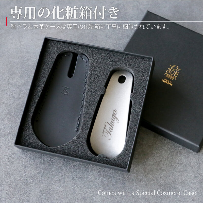 MADE IN 燕三条 の 高級 感あふれる コンパクト な 靴ベラ は レザー ケース つきで使い勝手抜群! プレゼント にも喜ばれます♪ 名入れ 無料 \ 職人の技が光る至極のアイテムが登場! / 仕事を頑張る彼へのプレゼント、悩みますよね。 アクセサリーはつけないし、定番ものはもうプレゼントしちゃった… そんな方にお勧めのアイテムがこちらの携帯用 の 靴ベラ です♪ 普段使いはもちろん、ビジネスシーンでも活躍してくれる アイテムなので、贈り物にも最適です! - だからギフトにぴったり。3つのおすすめポイント - 1.燕三条の職人が試行錯誤の末に作り上げた靴ベラ”nei” 良質な銅が産出されたことから、金属加工業が発展した街”燕三条”。 その名前は世界的にも有名です。 多くの職人が切磋琢磨し、一大産業を築き上げたこの地で、 1955年に創業したのが、今回この靴ベラを開発した 株式会社 田辺金具さんです。 「質のいいものをお届けしたい」 という一貫した想いから生まれる商品はそのすべてが”高クオリティ”の一言に尽きます。 こちらの靴ベラ”nei”もその中の1つです。 味わいのあるダメージ加工を施した”nei”は、余計な装飾が無く、 洗練されたデザインになっています。 また、すべて職人さんによる手作業で1つ1つ丁寧に仕上げられているので、唯一無二のアイテムといえるでしょう。 足の形状に沿う滑らかな曲線を作り出すために、何度も「磨き」を 繰り返し、手間暇かけて作られた靴ベラは、贈り物に最適ですよ♪ 2. 特製のレザーケース・ひも付き 贈り物をする際に気になるのが 使い勝手の良さ ですよね この靴ベラには、専用の レザー ケース と紐が付いていますので、 キーホルダー 感覚で持ち運ぶことができ、 必要な時に「無い!」を防げます♪ また、使用されているのはもちろん「 本革 」です。 年を重ねて大人の魅力が出てくる年代の男性ならば、 身に着けるものもふさわしい品格があるものが望ましくなります。 上品で美しい風合いの本革のケースは 使い込むほど味わいが増して経年変化が楽しめるので、 特別なアイテムとして長い付き合いを楽しんでいただけることでしょう。 3. お名前の彫刻 無料でいたします! 靴ベラ本体には一生消えることのないレーザー彫刻でお名前を彫刻いたします。 名入れギフト専門店の当店では、熟練の技術者が一点一点 心を込めて 大切なお名前やメッセージを商品に刻み込みます。 ずっと消えない彫刻は、記念の贈り物として大変喜ばれています。 末永く、愛着を持ってお使いいただけることでしょう。 「 どうして名前入りが喜ばれるの? 」 生まれた時からずっと一緒に生きてきた「名前」。 普段あまりにも身近にあるので、自分の名前のことを深く考える機会はありませんが 贈られた商品に自分の名前が刻まれていたらいかがでしょう。 その瞬間、“プレゼント”は“自分だけの大切なもの”へと変化します。 そして贈ってくれた方の真心を感じ、自然に笑顔がこぼれるのではないでしょうか。 |
