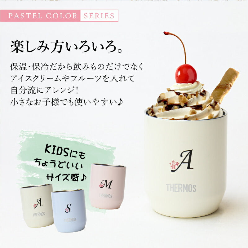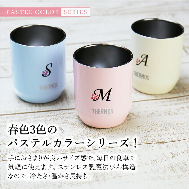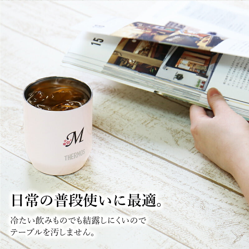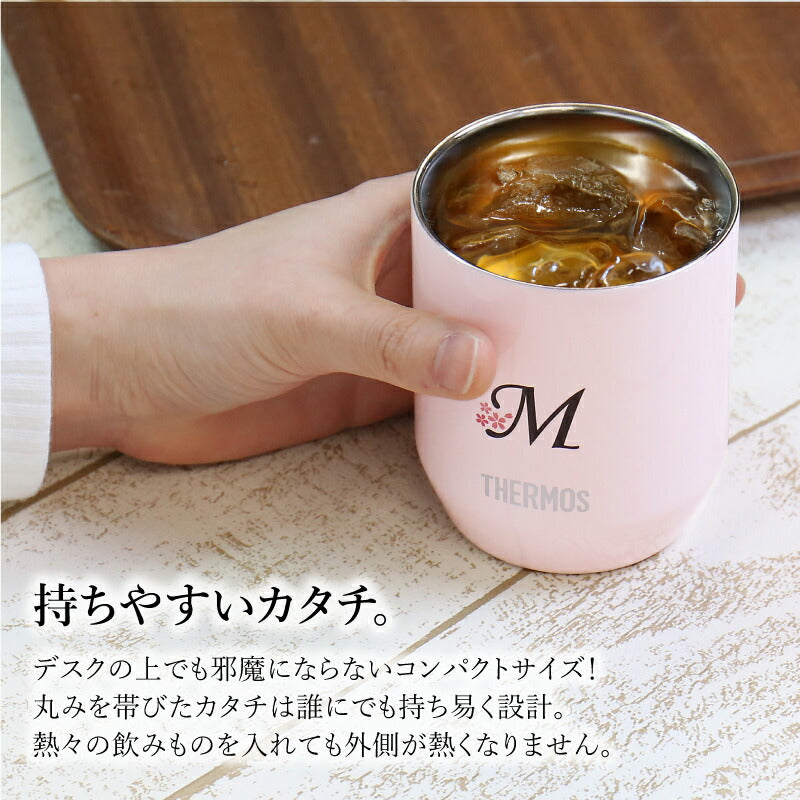 | 魔法びんのパイオニア、安心と信頼のサーモス製のタンブラーに、 当店大人気のSAKURAイニシャルデザインを施しました。 優しい色のパステルカラーとサクラのコラボレーションは、 女性への贈り物にピッタリ。 日本を象徴するさくら。 日本人の心に深く根ずく、 儚く美しいさくらをさりげなく施し、、 可憐な日本の女性らしさをイメージしました。 日本好きな外国の方へのギフトにも最適。 当店専属のデザイナーが制作したデザインなので、 他店ではお買い求めいただけません。 丈夫なステンレス製だから、割れない。 しかもコースター要らず! 結露が発生しないから机も手も濡れなくてとっても快適。 氷が溶けにくいから、味が薄まらないのも魅力。 オフィスや趣味の読書だってこのタンブラーなら余計な心配をせず好きな時に、 好きな場所でお楽しみいただけます。 もちろんホットにもアイスにも使えます。 ステンレス製魔法瓶構造だから外気の温度に影響されず 、 いつでも飲み頃温度をキープ。美味しさが長続きします。 飲み口が広いから飲みやすく大きな氷もらくらく入ります。 お酒を飲む方にもぴったりで大きすぎず、 丁度良いサイズですべすべとした質感が手になじんで使い心地抜群。 毎日の食卓でも気軽に使えます。 名入れタンブラーなら人が集まるシーンでも自分のタンブラーが一目瞭然! 割れなくて軽い丈夫なステンレスタンブラーはバーベキューやアウトドアにも大活躍します。 |