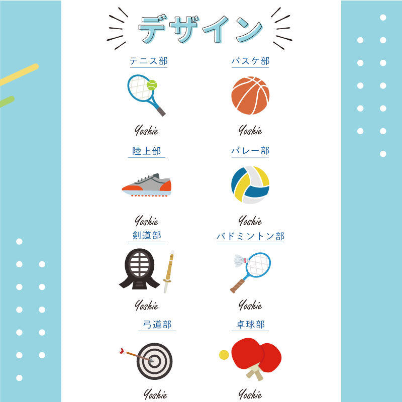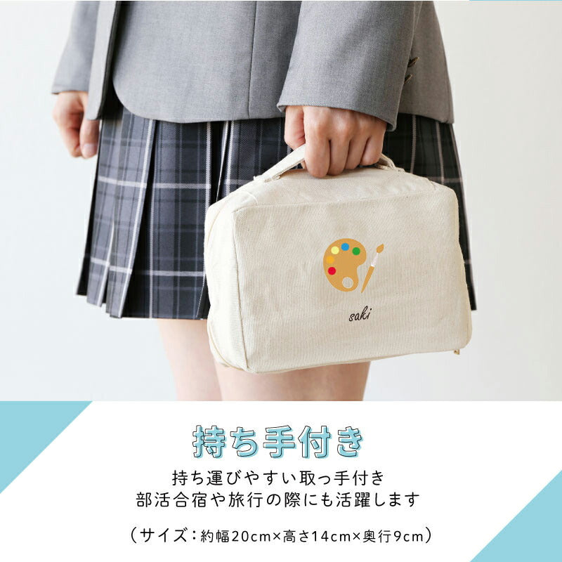 運動部 から 文化部 まで豊富な全40種類 ここでしか買えない当店限定のオリジナルデザイン! 卒業記念 卒団記念 の贈り物にピッタリな 部活アイコン ポーチです。 1. 当店オリジナル アイコン デザイン 当店専属のイラストレーターが作成した、 ここでしか手に入らないオリジナルの部活アイコンデザイン! 全40種類のバリエーションで、運動部・文化部 に幅広く対応。 あなたの所属している部活もきっと見つかるはず♪ クラブ仲間や、友達への贈り物にもぴったりです。 部活の思い出をぎゅっと詰め込んで、 いつも身近に感じられるアイテムを手に入れてみてはいかがでしょうか? ≪ 部活 全40種類≫ テニス部 / バスケ部 / 陸上部 / バレー部 / 剣道部 / チア部 / ダンス部 / 書道部 / 美術部 /写真部 / 放送部 / 料理部 / 帰宅部 / 弓道部 / バドミントン部 / 卓球部 / サッカー部 / ハンドボール部 / ラグビー部 / ソフトボール部 / フェンシング部 / レスリング部 / パソコン部 / 園芸部 / 茶道部 / 柔道部 / バレエ部 / 野球部 / スケボー部 / 登山部 / 科学部 / 和太鼓部 / 新体操部 / 器械体操部 / 花道部 / ホッケー部 / かるた部(百人一首)/ 水泳部 / 音楽系の部活 / 演劇部 2. 実用性に優れた スクエアポーチ ガバッと開くスクエア型だから中身が見やすく収納力バツグン! 持ち手付で 持ち運びもしやすく、大容量 で 実用的 な ポーチ です ハンドタオルや常備薬など、合宿 や 遠征 に必要な持ち物を収納したり、 旅行 や お出かけ などにも便利 です。 - こんな使い方がおすすめ - ・ 化粧品やメイク道具 を入れて コスメポーチ として ・ 衛生的に持ち歩きたい マスク や 消毒液 などの 除菌グッズ を入れるケースとして ・ 充電ケーブル イヤホン スピーカー モバイルバッテリー などの スマホ周辺機器 をまとめて 収納する ガジェット ポーチ として ・ シャンプー・リンスや歯ブラシなどのお泊りセットを入れて トラベルポーチ として ・ ぬい や アクスタ をいれて 推し活 グッズ として 3. お名前プリント 名入れギフト専門の当店スタッフが心を込めてお名前をプリントいたします。 「 どうして名前入りが喜ばれるの? 」 普段あまりにも身近にあるので、自分の名前のことを深く考えることはありませんが 贈られた商品に自分の名前が刻まれていたらどうでしょう。 しかも特殊な技法で彫り込まれていたり素敵なデザインとなってプリントされていたり・・ その瞬間、ただの“商品”ではなく“自分だけの大切なもの”に変化します。 そして贈ってくれた方の真心を感じ、自然に笑顔がこぼれることでしょう。 名前はその人にとって唯一無二、かけがえのないものです。 私たちはそのお名前を大切に、贈る人、贈られる人、両方の笑顔を想いながら商品を送り出します。 当店の名前プリントはずっと消えずに残り、永く愛着を持ってお使いいただけることでしょう。 ≪ こんなシーンにおすすめ ≫ ・ クラブ活動 チーム 部活動 スポーツ少年団 サークル ・ ミニバス ミニバスチーム ・ 大会 セレモニー 卒部式 卒団式 ・ 引っ越し する友達へ プレゼント に ・ 学校 小学生 中学生 高校生 の女の子に ・ 入学祝い 卒業祝い の 記念品 に ・ マネージャー 後輩 先輩 引退記念 ・ 部活 クラブ を 卒業 引退する 部員 への 卒団記念品 に |