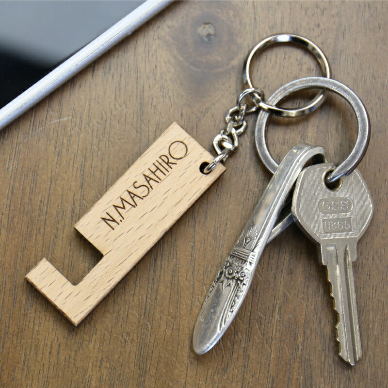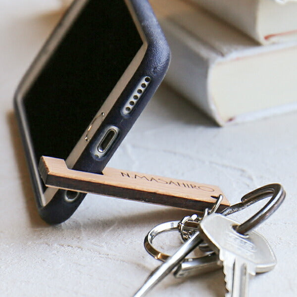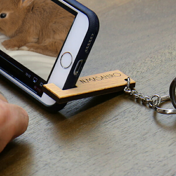木製スマホスタンドキーホルダー