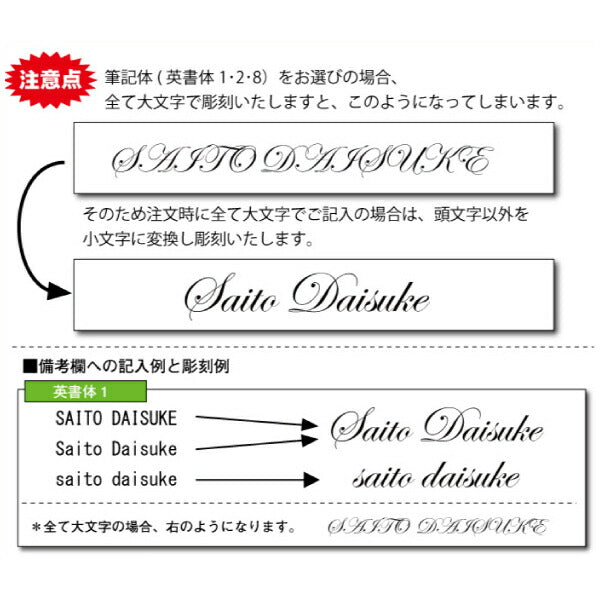 | 名入れ | 彫刻する文字は「入力欄」へご記入下さい。 【お名前】日本語・ローマ字OK ・上記以外は当店で変更します ・文字サイズは当店で調整します |