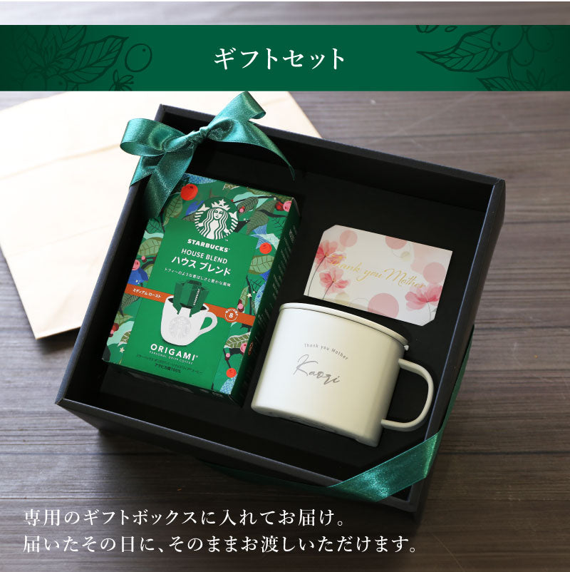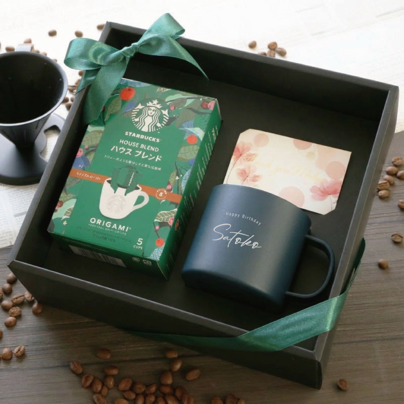 高機能で日常生活に大活躍なマグカップと スターバックスの名品 “ハウスブレンド”をセットにした 珈琲好きに贈りたいギフトセット。 1)シンプル&機能的なピーコックのマグカップ ・ステンレス真空二重構造で、飲み物の温度を長時間キープ ・熱くなりにくく、結露しにくいから、コースター不要 ・ほこりを防ぎ、保温・保冷効果を高めるフタ付き ・スプーンを刺したままフタをすることが可能 ・目盛り付きで、スティック珈琲やインスタントスープを作るのに便利 2)スターバックス「ORIGAMI」ハウスブレンド ・コーヒー好きに贈っても安心の王道ブレンド ・ドリップパックだから、いつでも手軽に淹れたての香りを楽しめる ・開封後の酸化が気にならず、ギフトとしても安心 3)名入れ彫刻で、世界にひとつだけの特別感 ・特別なメッセージとお名前を刻印 ・大切な方に伝えたいメッセージを刻めば、特別なマグに ・シンプルなデザインだから、どんなシーンでも使いやすい 日常の一杯を、もっと特別に。 誕生日や記念日のギフト、自分へのご褒美にもぴったりなギフトセットです。 《こんなシーンでおすすめ》 ・母の日・父の日・敬老の日 の贈り物に ・誕生日・記念日・退職祝い などの特別なプレゼントに ・珈琲好きの方 へのギフトとして ・新生活・引っ越し祝い にもぴったり |