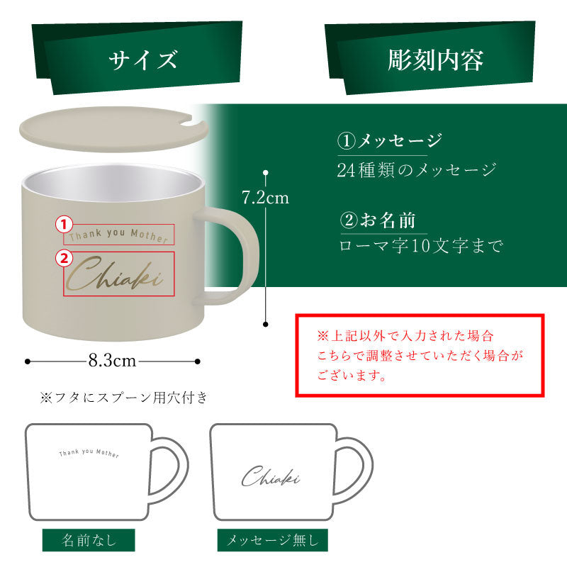 | サイズ | テンレスマグ:口径:8.3 縦7.2×横11.8cm |