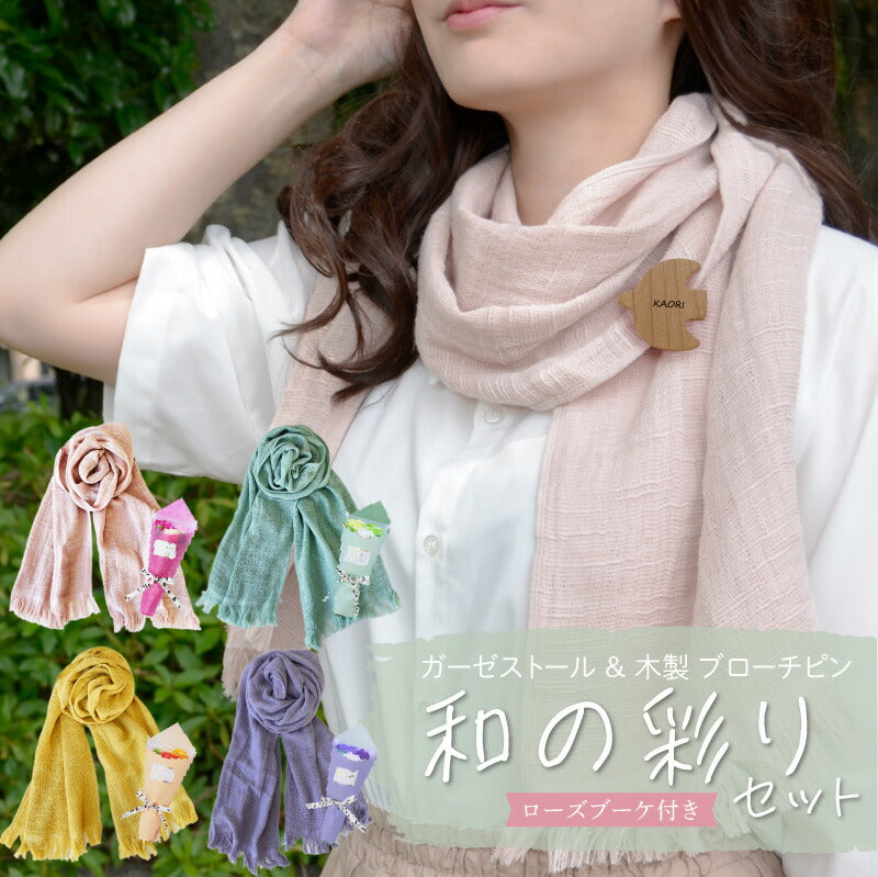 ガーゼストール & 木製 ブローチピン 和の彩り セット