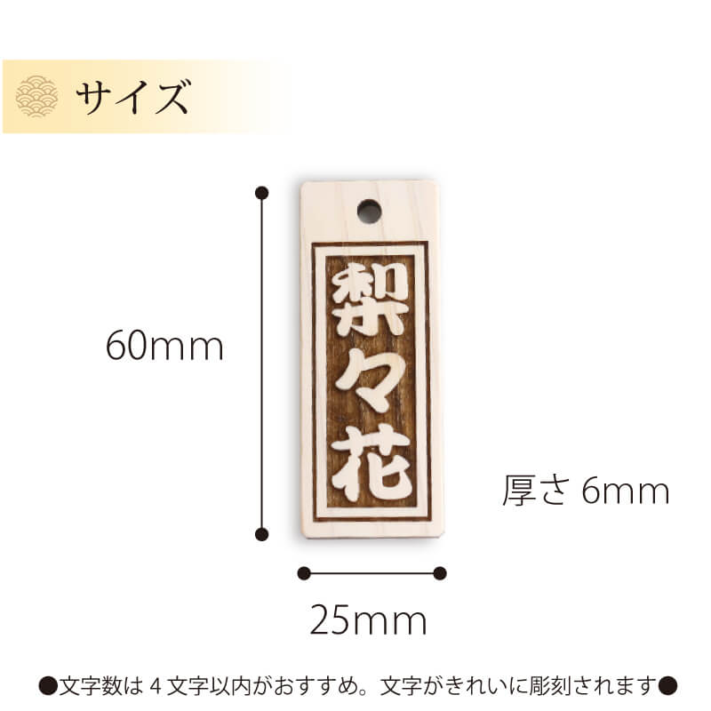 | サイズ | 木札:縦60mm x 横25mm x 厚み6mm 組紐:約110mm |