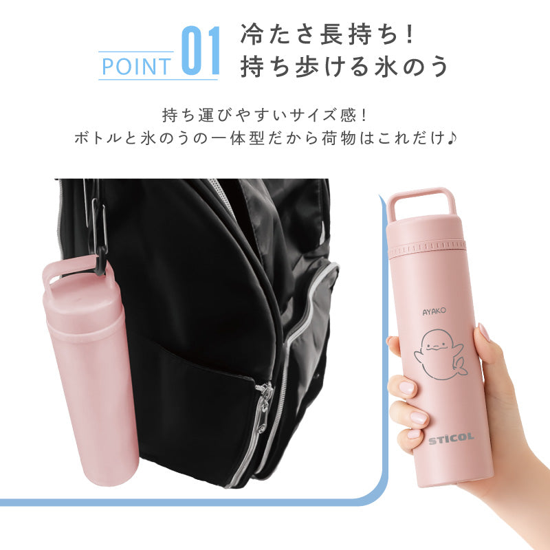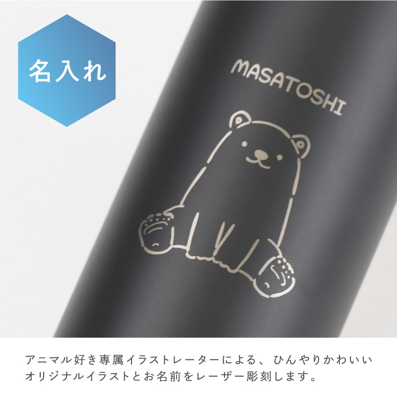 自分専属イラストレーター書き録り。 肌にあてて冷やして、飲んでクールダウン。 癒やしデザインで暑い夏を乗り切ろう! だからおすすめ3つのポイント 1)〔 氷のうなるにも直飲みボトル】 ・上蓋から飲んで、下蓋が出て冷やす! 1本で上映2WAY構造 ・氷+飲み物を入れるだけで、外出先のコンビニで購入可能。 ・熱中症対策、アウトドア、通勤通学、旅行などに大活躍する ・二重真空構造でひんやりがずっとちゃんと続く 2)〔 名入れ×動物イラストで「世界にひとつ」 】 ・シロクマ/イルカ/シマエナガ/ラッコ/アザラシ/ペンギン/サメ/イヌ/ネコ/マンボウ/ウサギ 12種のイラストをレーザー彫刻・ 動物好き専属イラストレーターによるオリジナルイラスト・ お名前を添えた彫刻で、特別なギフトにも◎ 3)〔 スリム&軽量デザインで持ち運びやすさ抜群 】 ・バッグに収まりやすい、お子さまや女性にも扱いやすいサイズ感・ 柔らかなシリコン素材で体にも優しくフィット・ 結露しない二重構造&食洗機対応でお手入れラクラク・ カラビナも装着可能だからバッグにつけられても便利! - 名入れで贈る特別感- ・ペットの名前入りで「うちの子グッズ」としても・お揃いで議論すれば 、家族や友人との夏がもっと楽しく ・名入れ+アニマル彫刻で、お子様も大喜び ・記念品やノベルティにも映える、デザインの高い仕上がり《こんなシーンで 選ばれています》 ・暑さ対策グッズを夏のプレゼントに ・ゴルフや部活の卒団記念品として ・子どもの通学・習い事バッグに・キャンプ ・ピクニックなどアウトドアのおいっしょ ・愛犬・愛猫のお散歩熱中症対策に ・スポーツ観戦に ・通勤・通学・電車バス内でのクールダウンに |