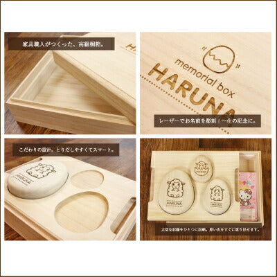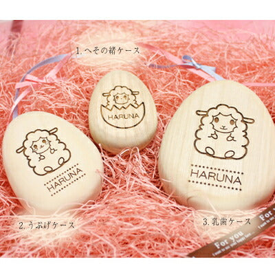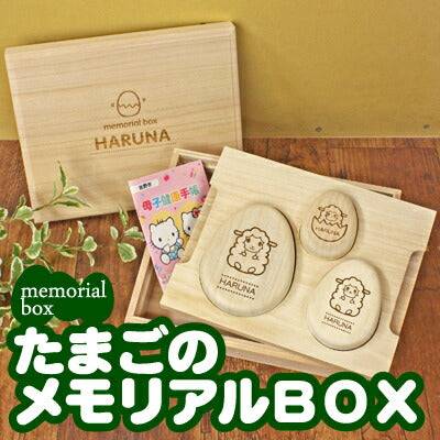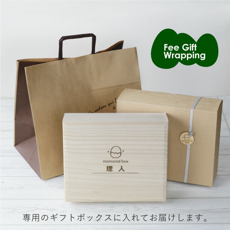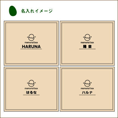 当店人気のたまごシリーズ全種入 たまごのメモリアルボックス ・へその緒ケース ・うぶげケース ・乳歯ケース 上記3種類全てを高級桐箱にお入れした 特別感あふれる特製メモリアルボックスです。 メモリアルボックス本体にはもちろん、 3種類のケースそれぞれにお名前が入ります。 ふたを開けると2段構造になっており、 上段には3種のケースが収納できる専用プレート、 下段は収納スペースとなっています。 収納スペースには母子手帳や赤ちゃんのネームバンド、写真などお好きなものを便利に収納していただけます。 キャラクターは当店完全オリジナル! 12種類の愛くるしいどうぶつ達の彫刻。 一見、同じイラストのように見えて実はケースごとに異なり、 最初はたまごに入っている動物がだんだんと成長しているように変化をつけています。 お子さまの成長と重ね合わせることで、 このボックスを見るたびに楽しく振り返ることができます。 お生まれの干支で選ぶのも良し、お子さまのお好きな動物でお選びいただいても愛着たっぷり。 天然の桐材を使用しているためそれぞれ木目や色が異なるから同じものは2つとありません。 また、ひとつひとつの箱に名入れの刻印が可能だから世界にただ一つだけの贈り物になります。 大切な方へのご出産祝いに自信を持っておすすめする商品です。 |