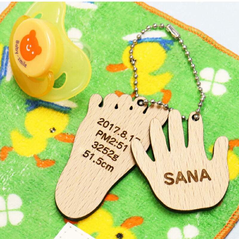 ≪手がた・足がた 木製キーホルダー≫ 小さくてかわいい手形・足形を そのままキーホルダーに。 |