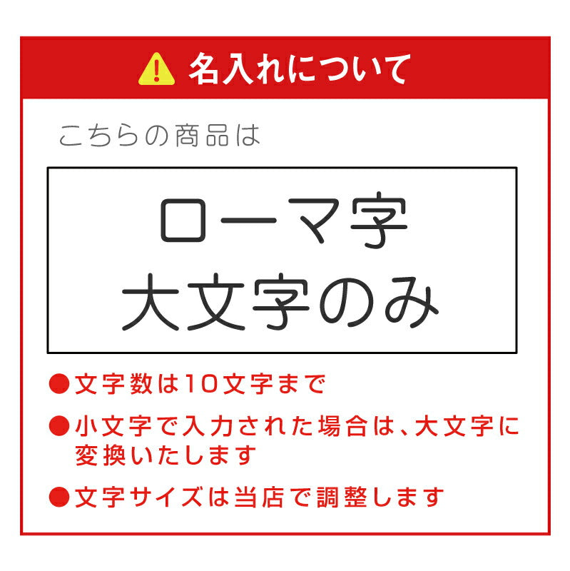 彫刻する文字は「入力欄」へご記入下さい。 【お名前】ローマ字のみ ※日本語不可 文字数は10文字までとさせていただきます。 ・上記以外は当店で変更します ・文字サイズは当店で調整します |