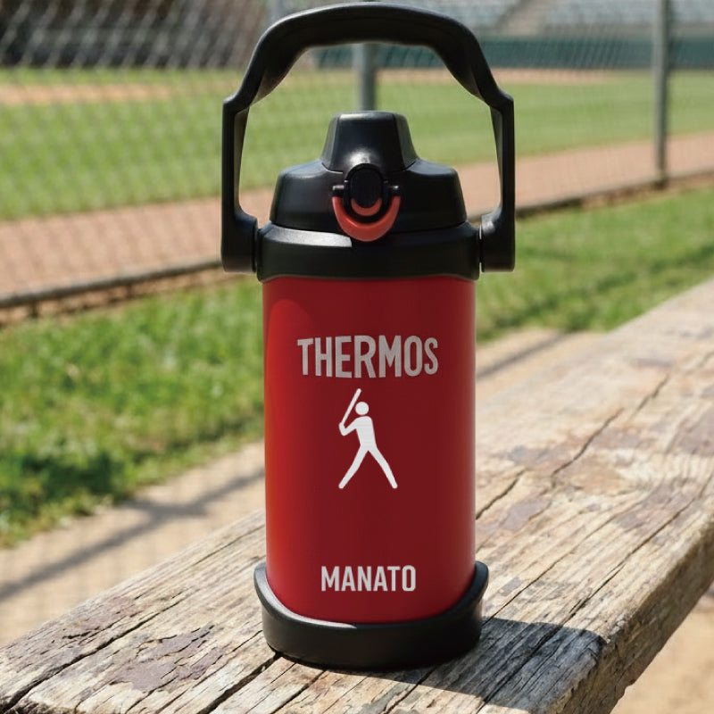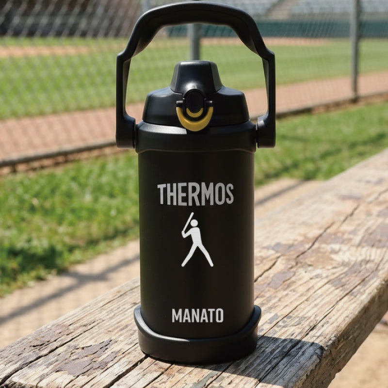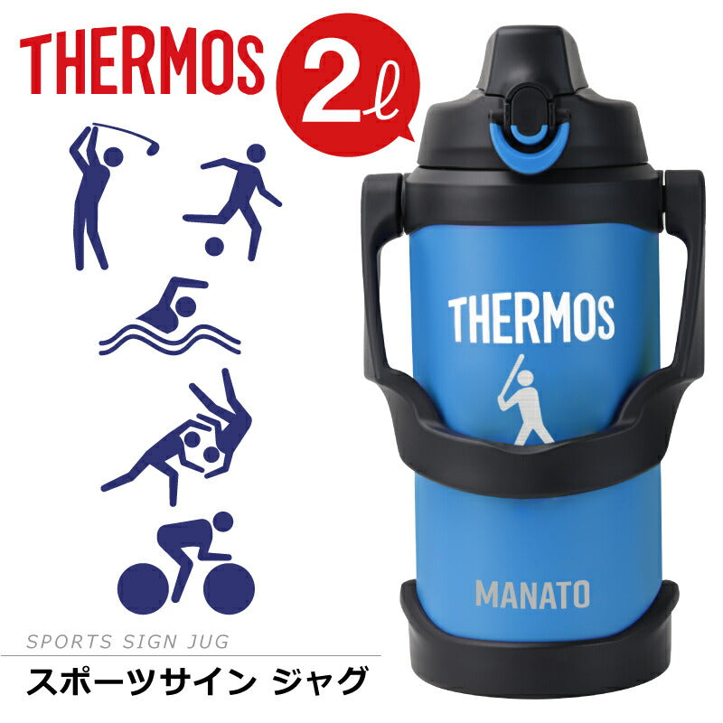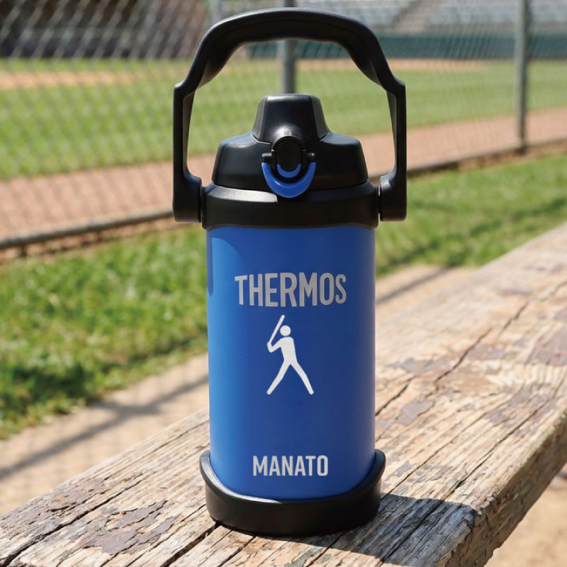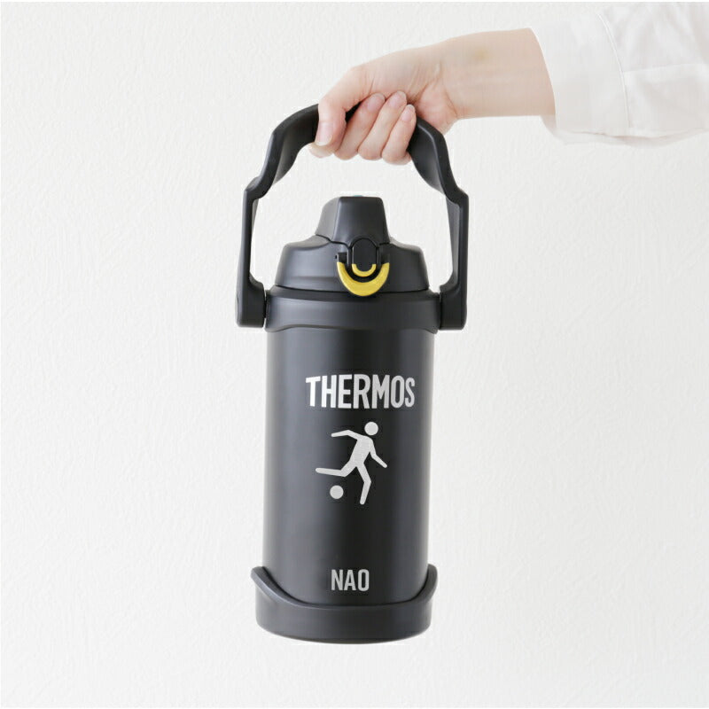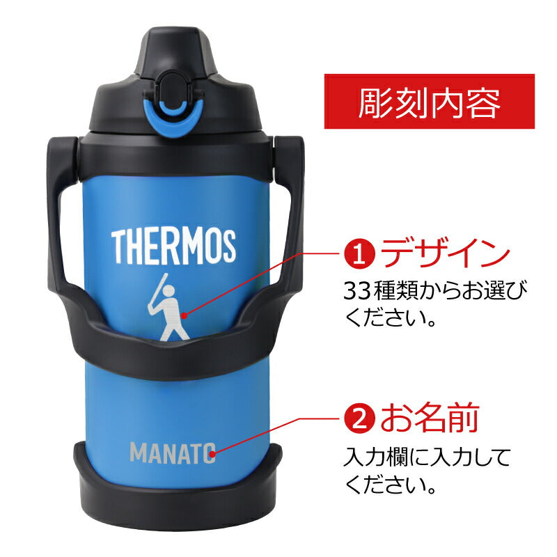 うだるような暑さの続くこの季節。 こまめに水分補給して熱中症対策をきっちりしよう! サーモス2lジャグならいつでもつめた〜いスポーツドリンクが ごくごく飲める♪ さらにボディにはスポーツサインを彫刻。 カッコいいスポーツジャグなら スポーツ 部活 サークル活動 でも、 この夏手放せない相棒になること間違いなし! 1) 安心安全の サーモス ブランド サーモスといったら抜群の保冷力 ! もちろんこちらの スポーツジャグも ステンレス 魔法びん 構造だから、ばっちり冷たさキープ! 口径が大きいから、大きい氷がそのまま入って、 長時間溶けることはありません。 保冷 効力は最大6時間! 朝から夕方までずっと冷た〜いから、 激しいスポーツシーンに最適♪ スポーツをする方にとって、水分補給は大切。 部活動をする 学生 たちや、 顧問の 先生 監督 コーチ にとっても、 大会や練習で強い味方になってくれることでしょう。 仲間たちとの青春の日々を思い出に! 卒団 卒部 記念品にもおすすめです。 ・中まで丸洗い可能のワイドな口径 大人の手でもすっぽり入るから、 底まで綺麗に洗えてお手入れ簡単。 ずっと清潔にご使用いただけます。 衛生的に長く使えて 洗いやすい ♪ お母さん にも嬉しい仕様。 現場仕事をしている お父さん や 部活をしている 子供 への プレゼント にも 人気 です。 ・ 大容量の 2L スッキリとしたデザインのボトルですが、 その容量はなんと 2.0L! 部活男子・女子にはこのサイズ!スポーツにおいて水分補給はコンディションを保つのに必須! たっぷり 2リットル だから、継ぎ足し無しでノンストレス! 激しく汗をかく運動時や、猛暑日の続く夏。 通常サイズのボトルでは足りないなんてよくあること。 このスポーツジャグなら、 何本も 水筒 や ケータイマグ を用意する必要なくこれ一本でOK! 通勤 通学 に便利なのはもちろん、 キャンプ や アウトドア などのすぐに飲料が手に入らない場所でも安心です。 ・ ワンタッチ・オープンで素早く給水 ワンタッチでふたを開閉できるから、 飲みたいときにすぐに飲める! 素早い給水「 直飲み 」タイプ。 給水口が大きいから一度にたくさん水分補給できる。 あつ〜い炎天下でも豪快にゴクゴク飲めて気持ちいい♪ キャップユニットにはボタンロックが付いているので、 中身が零れることなく、砂ぼこりもシャットアウト! ツートンカラーのロックリングで ロックされているのがわかりやすい、 シンプル構造のキャップユニットです。 本体も丸洗いできてお手入れ簡単♪ ・ 安定感あるボディデザイン コンパクト かつ、軽量 設計のボディデザインだから、 両手でしっかりホールド出来て飲みやすい! 女性 にも使いやすく、安定性のある ボトル です。 一体型の取っ手が付いているので、片手で簡単に持ち運び♪ カーブしたハンドルが持ち手にフィットするから 指に負担をかけません。 ゴルフ や レジャー 遠征 に行くときにも大活躍します。 スポーツシルエットを彫刻いたします。卒業記念品におすすめ! シンプルなデフォルメデザインは、みんなの目を惹くこと間違いなし! ・ゴルフ ・サッカー ・バスケットボール ・野球 ・バレーボール ・テニス ・卓球 ・バドミントン ・ラグビー ・ハンドボール ・ホッケー ・ビーチバレー ・柔道 ・空手 ・レスリング ・ボクシング ・陸上 ・水泳 ・水球 ・飛び込み ・トライアスロン ・カヌー ・ヨット ・体操 ・新体操 ・トランポリン ・フェンシング ・アーチェリー ・射撃 ・ウェイトリフティング ・乗馬 ・自転車 ・BMX 私たちに夢と希望を与えてくれるスポーツ。 その魅力をあますことなく伝えたいという想いから、 多種多様な 競技 を取り揃えました。 きっとあなたのお気に入りのデザインが見つかるはず。 さらに、スポーツデザインの下にはお名前を刻印。 特別感もグッと増す、自分だけのオリジナルボトルが作れちゃいます。 友達と同じメーカーの水筒でも、これなら間違えない! 部活やクラブ活動時、一か所に飲料ボトルが集められていても、 自分のものが一目瞭然! 学校生活でも欠かせない相棒になること間違いなしの 名前入り ジャグ。 新生活 を応援したい! 大好きな部活動がさらに楽しくなれるように! そんな想いを込めて、 入学祝い に贈ってみるのはいかがでしょうか? 彫刻するジャグのカラーは ・ブラック ・ブルー ・レッド の3種類からお選びください。 【 名入れギフト専門店のこだわり 】 「 どうして名前入りが喜ばれるの? 」 生まれた時からずっと一緒に生きてきた「名前」。 普段あまりにも身近にあるので、 自分の名前のことを深く考える機会はありませんが 贈られた商品に自分の名前が刻まれていたらいかがでしょう。 その瞬間、“プレゼント”は“自分だけの 大切なもの”へと変化します。 そして贈ってくれた方の真心を感じ、 自然に笑顔がこぼれるのではないでしょうか。 名前はその人にとって唯一無二、かけがえのないものです。 私たちはそのお名前を大切