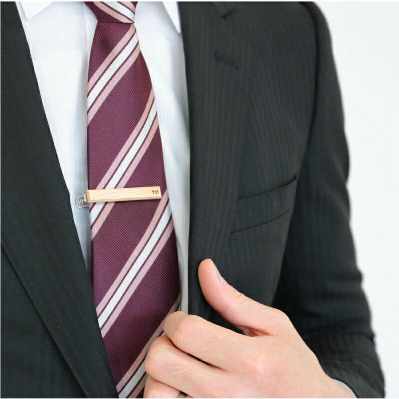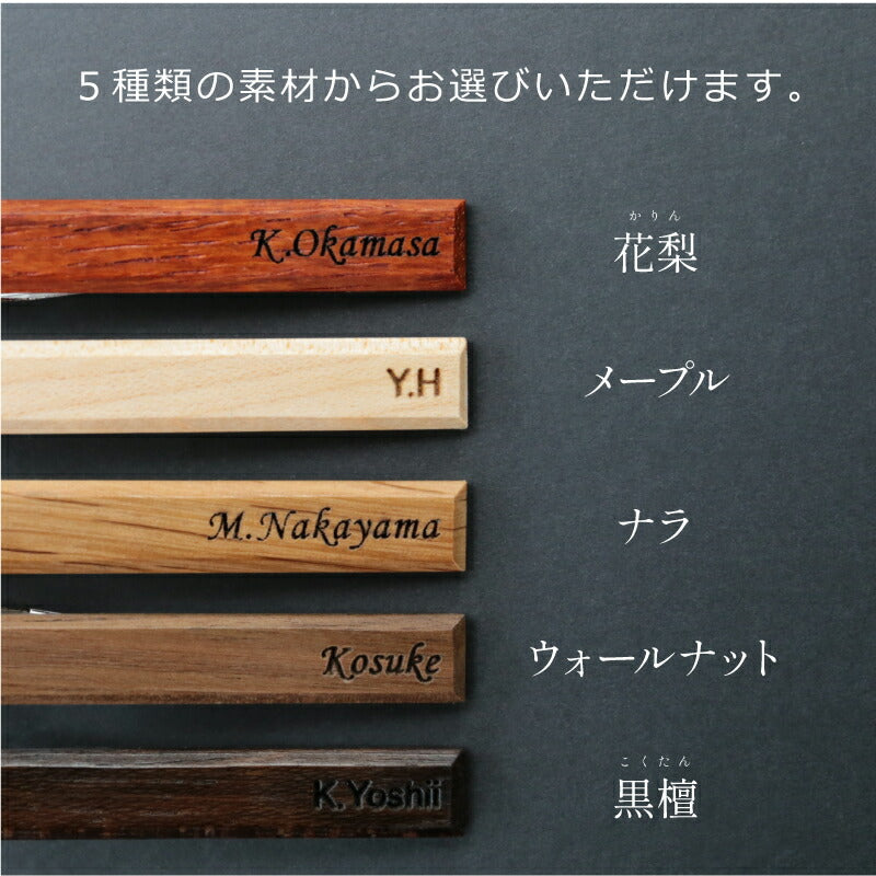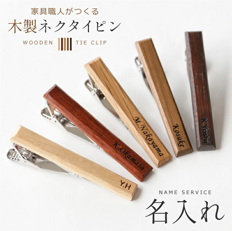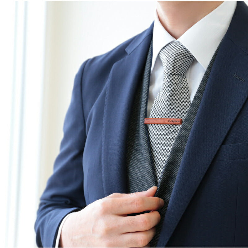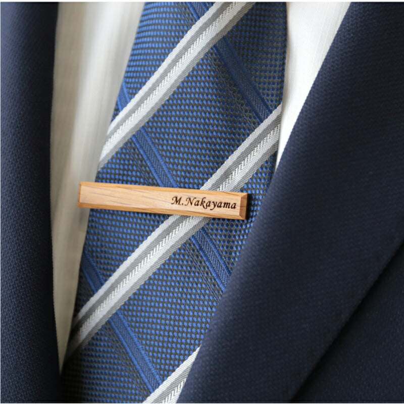 私たちの生活や文化には欠かせない“木”という存在。 その魅力をいつでも身近で感じられるように、 ネクタイピンに加工しました。 家具職人の手によって造られ、 一つ一つ丹精込めて丁寧に仕上げられております。 木のなめらかな質感と、あたたかな雰囲気を ぜひお手元にとって感じてみてください。 1) 男性への贈り物におすすめのネクタイピン スーツを着る男性にとって、ネクタイは必需品。 同じくらい、スーツスタイルに欠かせないアイテムがネクタイピンです。 小さな脇役アイテムのイメージがありますが、 胸元に身に着けるため、意外と存在感のあるアクセサリーなんです。 身なりに気を遣う男性は魅力的に見えるもの。 おしゃれなネクタイピンをしていると、 こまかい部分にも気を使える人なのだと 好印象を持ってもらいやすいので、 普段のスーツ姿でもネクタイピンを付けるのがおすすめ。 だから、プレゼントとして贈るにはぴったりのアイテムなんです。 シーンに合わせて使い分けをする 小物 なので、 何個持っていても困らない、というのも 贈る側からすれば嬉しいポイントです。 こちらのネクタイピンはスタンダードな ワニ口 式。 クリップ ひとつでネクタイと シャツ をホールドすることができる定番の形です。 実用性もあってとても使い勝手がいいので、 初めてネクタイピンを購入する方にもおすすめのタイプです。 2) 木という素材の魅力 このネクタイピンは一本の天然木を削りだし、 自然の姿をそのままに タイピン に加工したものです。 ネクタイピンといえば、シルバーが一般的な印象ですが、 木製のネクタイピンというのも個性があって、 いつもと違うスーツスタイルを楽しむことが出来るのでおすすめです。 なにより“木”は、魅力にあふれている素材なんです。 生まれた環境や育ち方によって個性が生まれるので、 同じ商品でも一つ一つが色合いや質感の違うものに仕上がっています。 さらに木は、経年変化 を楽しむことが出来ます。 光を浴びることによって色合いや風合いが変わり、 様々な表情を見せてくれます。 これは、木が生きているという証拠。 時間が経つにつれて、木でしか表現できない味わい深さや美しさが生まれるので、 愛着を持って永くお使いいただけます。 〔 全5種類の木材 〕 ・メープル 乳白色で明るい木肌と滑らかな手ざわりが心地よいのが特徴。 柔らかでやさしい雰囲気なので、 カジュアルなファッションに合わせるのがおすすめです。 ・ウォールナット 艶のある木肌が美しい、ダークブラウンの木材です。 シックで落ち着いた風合いが魅力的。 スーツスタイルにも上品に合わせられます。 ・黒檀 固くて光沢のある木で、家具や仏壇などにも用いられます。 重厚感を感じる漆黒の色合いなので フォーマルな服装にもあわせやすい木材です。 ・花梨 他の木材と比べて赤みが強く、一目惹く存在感なので、 落ち着いた色合いのネクタイにも、華やかさを持たせてくれます。 ・ナラ どんぐりの生る木として知られているナラの木は、 くっきりとした力強い木目が特徴的。 無地のスーツにもちょっとしたアクセントを加えてくれます。 3) 名入れ彫刻 当店自慢のレーザー加工による名入れサービスは、 職人の手でひとつひとつ丁寧に施しております。 彫刻したお名前は消える事がございませんので、 贈り物として大変喜ばれます。 「 どうして名前入りが喜ばれるの? 」 自分の名前が入った商品は世界にただ一つだけ。 贈った人に大事に使ってほしい、想いが伝わります。 さらにお名前彫刻はずっと消えずに残るから、永く愛着を持って使っていただけます。 だから、「名入れギフト」は大切な人に感謝の気持ちを伝えるのにぴったりなおくりもの。 私たちは、贈られた人も贈った人もみんなが笑顔になれる商品をお届けします。 ≪こんなシーンにおすすめ≫ ・新社会人への 卒業祝い 就職祝い のギフトとして ・お父さん おじいちゃんへの 父の日 敬老の日 ギフトとして ・クリスマス バレンタインの 彼氏への プレゼントとして ・上司 先輩への 退職祝い 転勤祝い の 餞別 に |