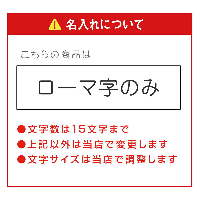 プリントする文字は「入力欄」へご記入下さい。 【お名前】ローマ字のみ ※日本語不可 文字数は15文字までとさせていただきます。 ・上記以外は当店で変更します ・文字サイズは当店で調整します |