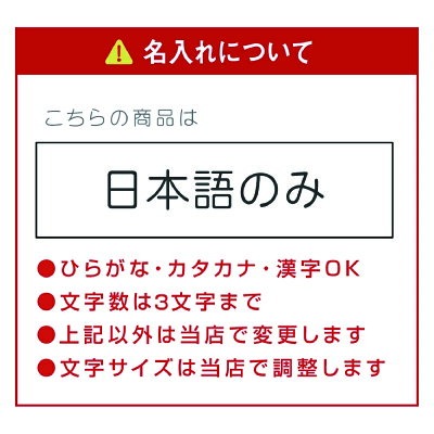 | 名入れ | 彫刻する文字は「入力欄」へご記入下さい。 【お名前】日本語のみ※ローマ字不可 文字数は3文字までとさせていただきます。 ・上記以外は当店で変更します ・文字サイズは当店で調整します |