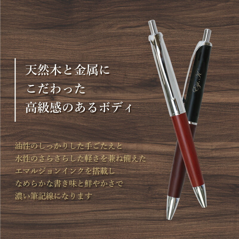 【ZEBRA フィラーレWD ボールペン】 [スタンダードなデザイン] しっくりと手になじむ緩やかで優雅な曲線のフォルムで、 持ちやすさと優雅な雰囲気を表現しています。 スタンダードでシンプルなデザインなのでギフトに適しています。 [天然木と金属にこだわった高級感のあるボディ] 手になじむ天然木の質感と、曲線にこだわった全体のフォルムが、 贅沢な1本として高級感を演出します。 大切な人への贈り物にもおすすめです。 [エマルジョンインク搭載] ボールペンは、油性のしっかりした手ごたえと、 水性のさらさらした筆記感を兼ね備えたエマルジョンインクを搭載し、なめらかな書き味と鮮やかで濃い筆記線を実現しています。 名入れ専門店自慢の技術でお名前を無料で刻印いたします。 届いてすぐに贈れる便利なギフトラッピングも無料でお付けします。 就職・退職祝いや卒業・入学祝いなど特別なシーンにふさわしいギフトです。 |